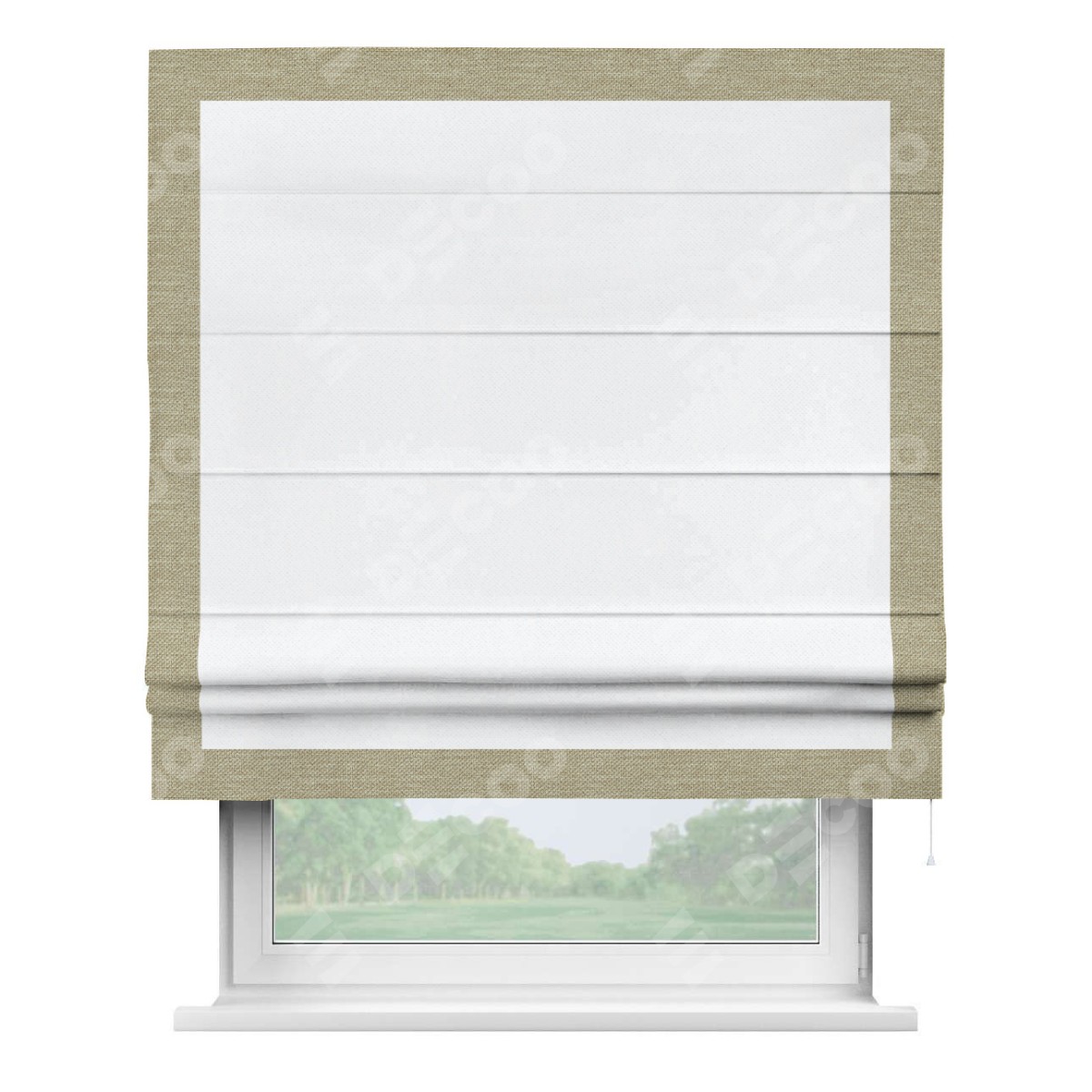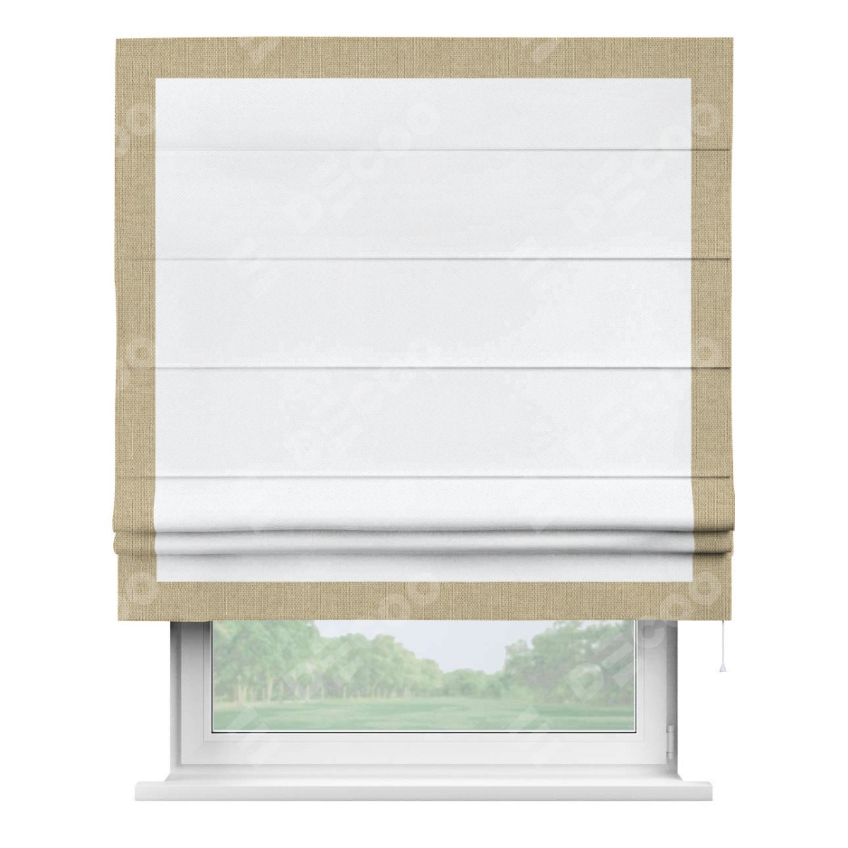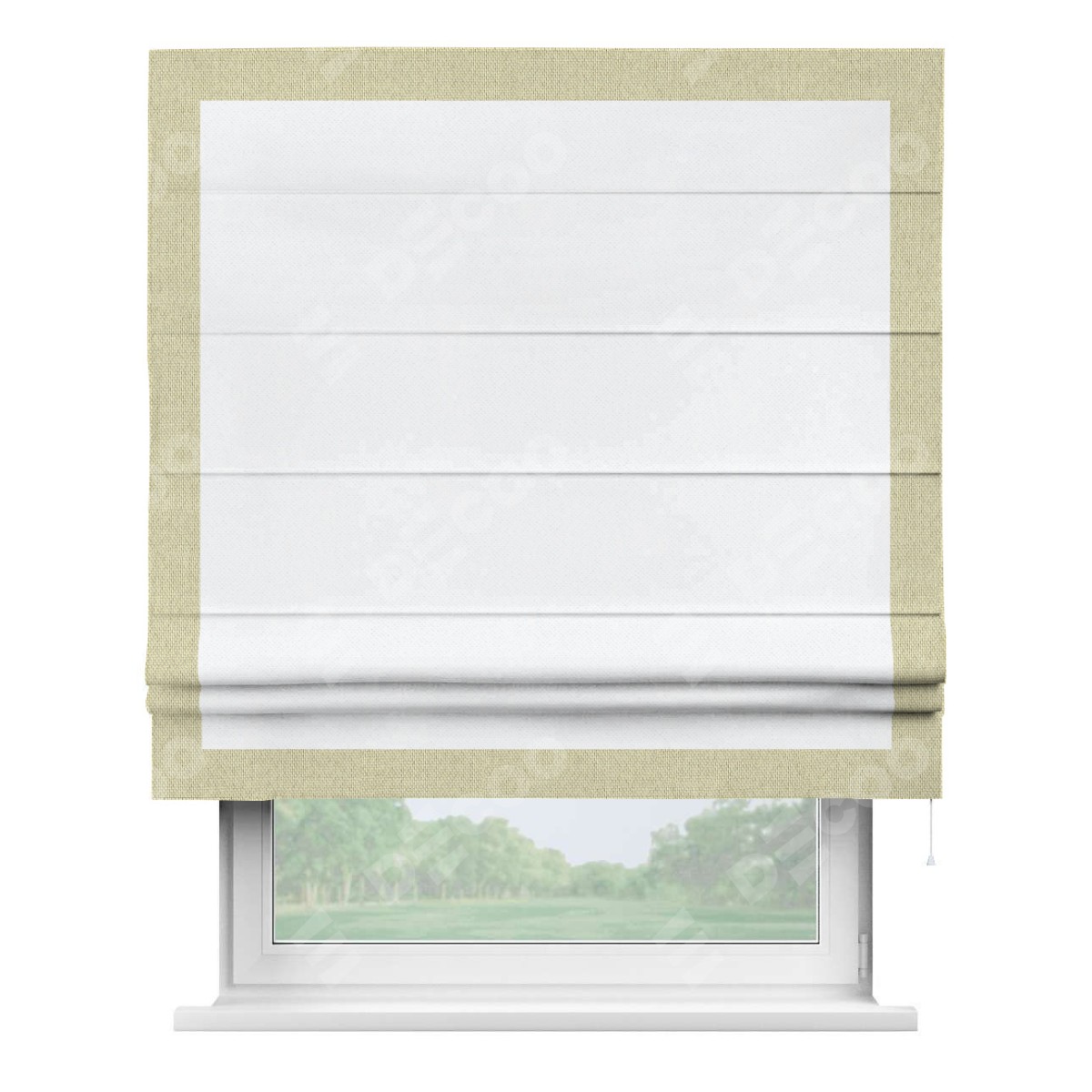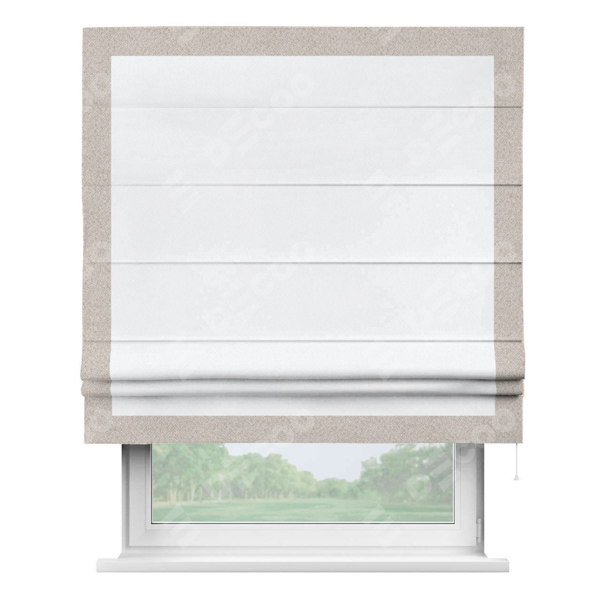 Римская штора «Кортин» для проема, лён димаут белый с кантом Чесс