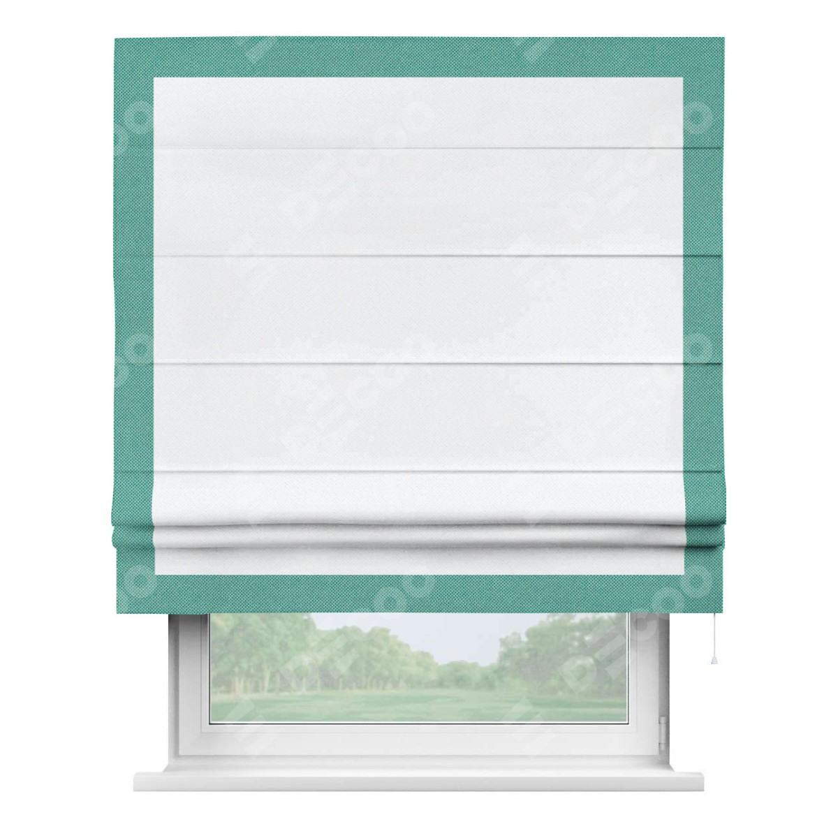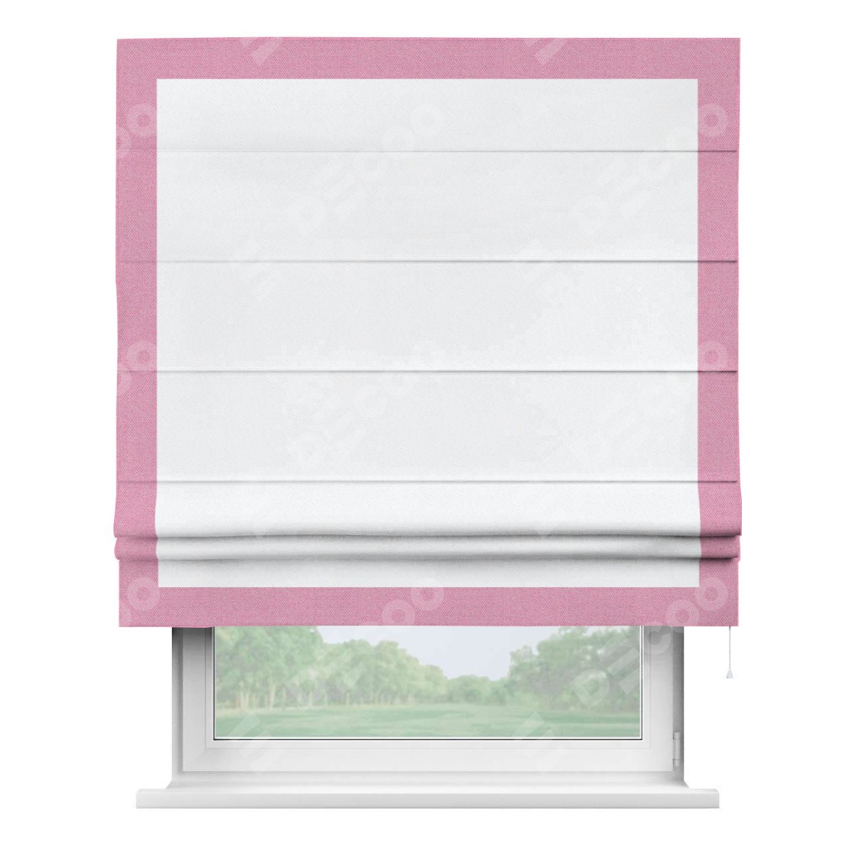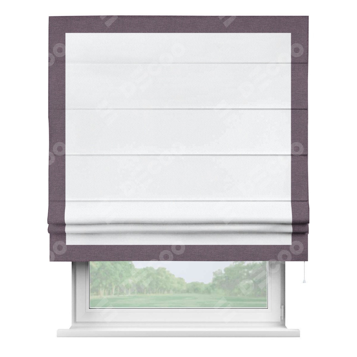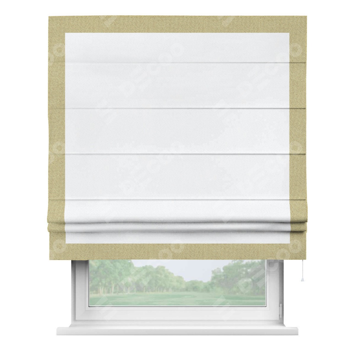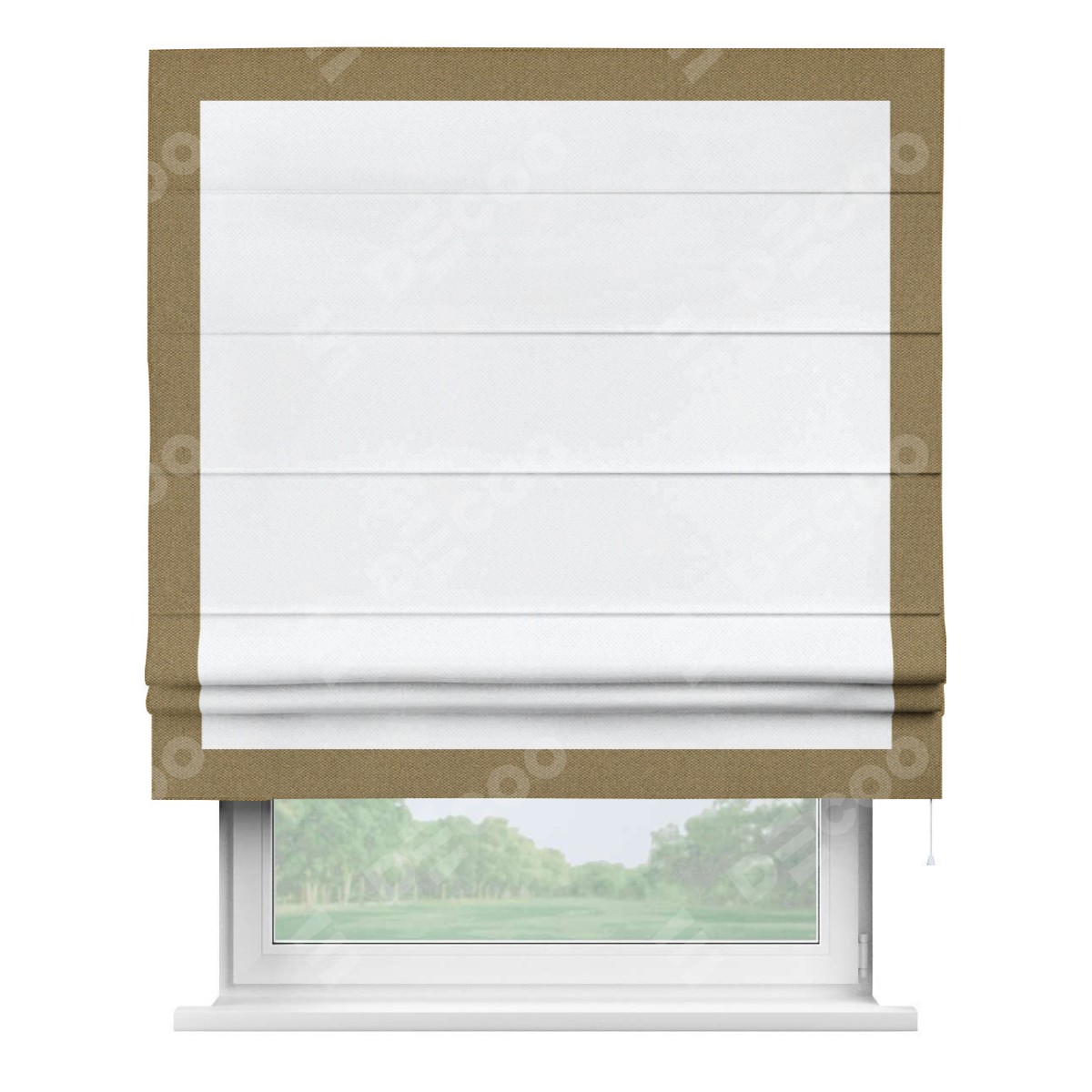 Римская штора «Кортин» для проема, лён димаут белый с кантом Чесс
