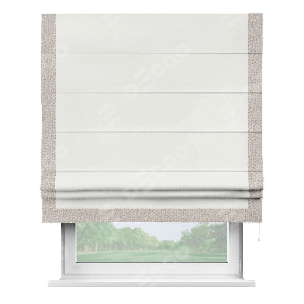 Римская штора «Кортин» для проема, лён димаут молочный с кантом Виктория