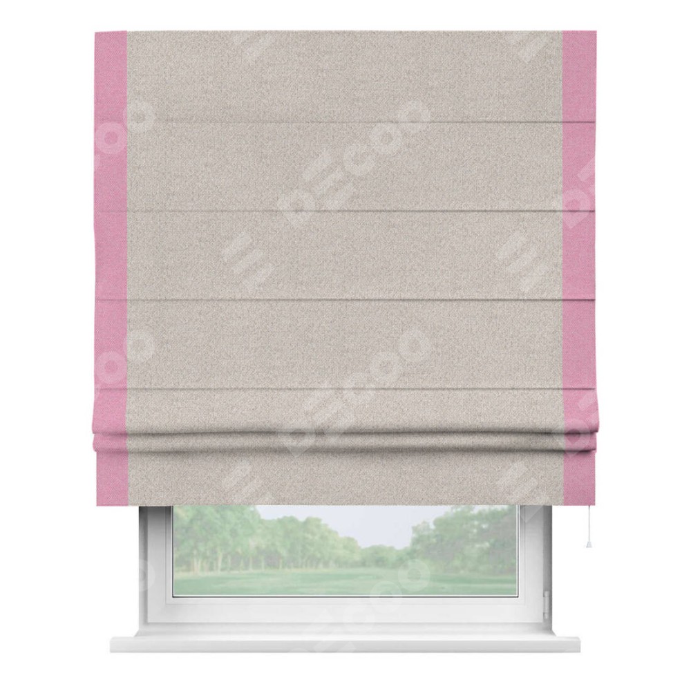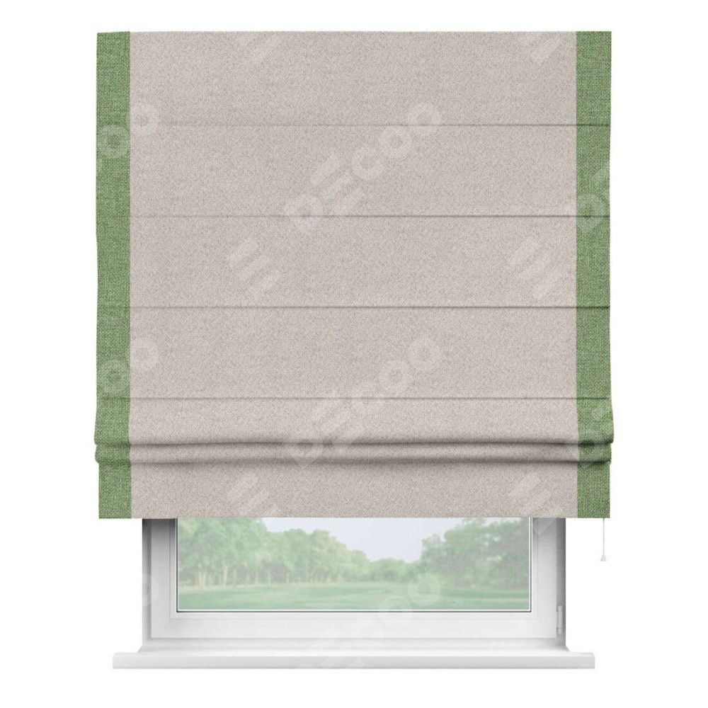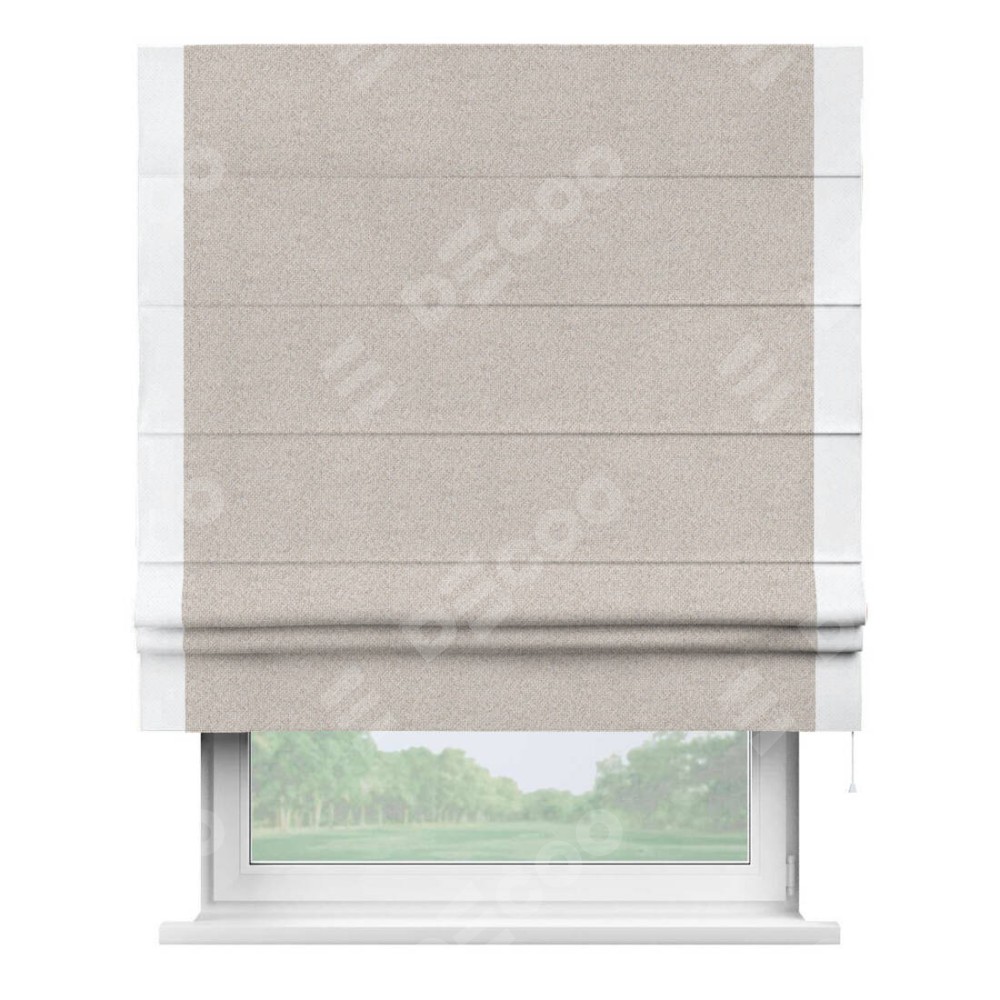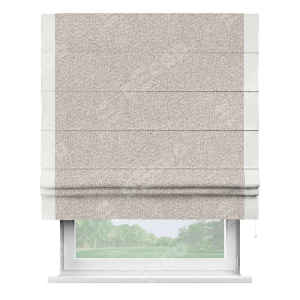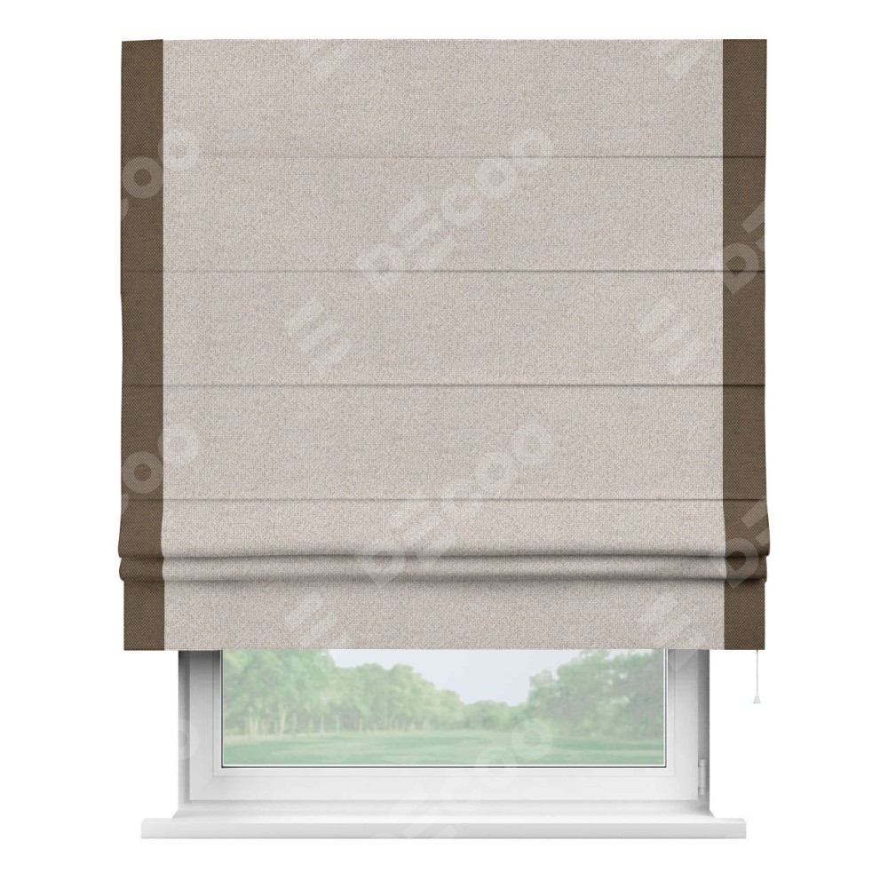 Римская штора «Кортин» для проема, лён димаут бежевый с кантом Стрим Дуо