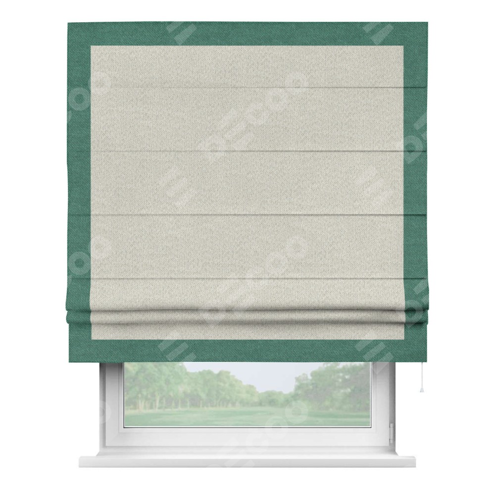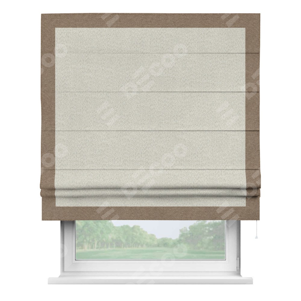 Римская штора «Cortin» для проёма, лён димаут светло-бежевый с кантом Чесс