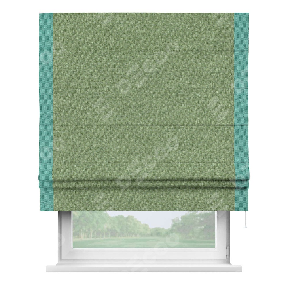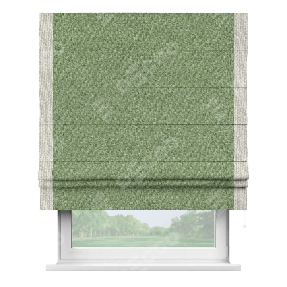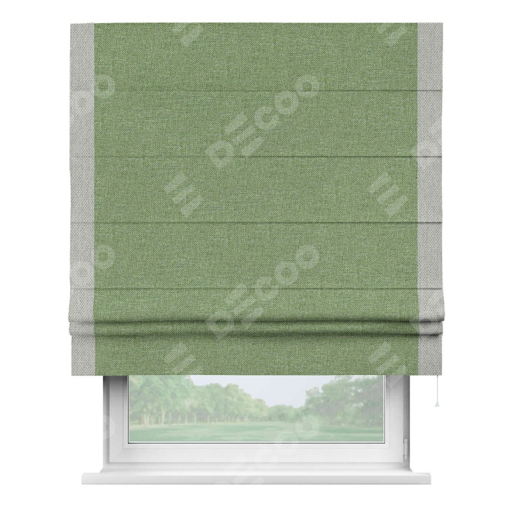 Римская штора «Cortin» для проёма, лён димаут светло-салатовый с кантом Стрим Дуо