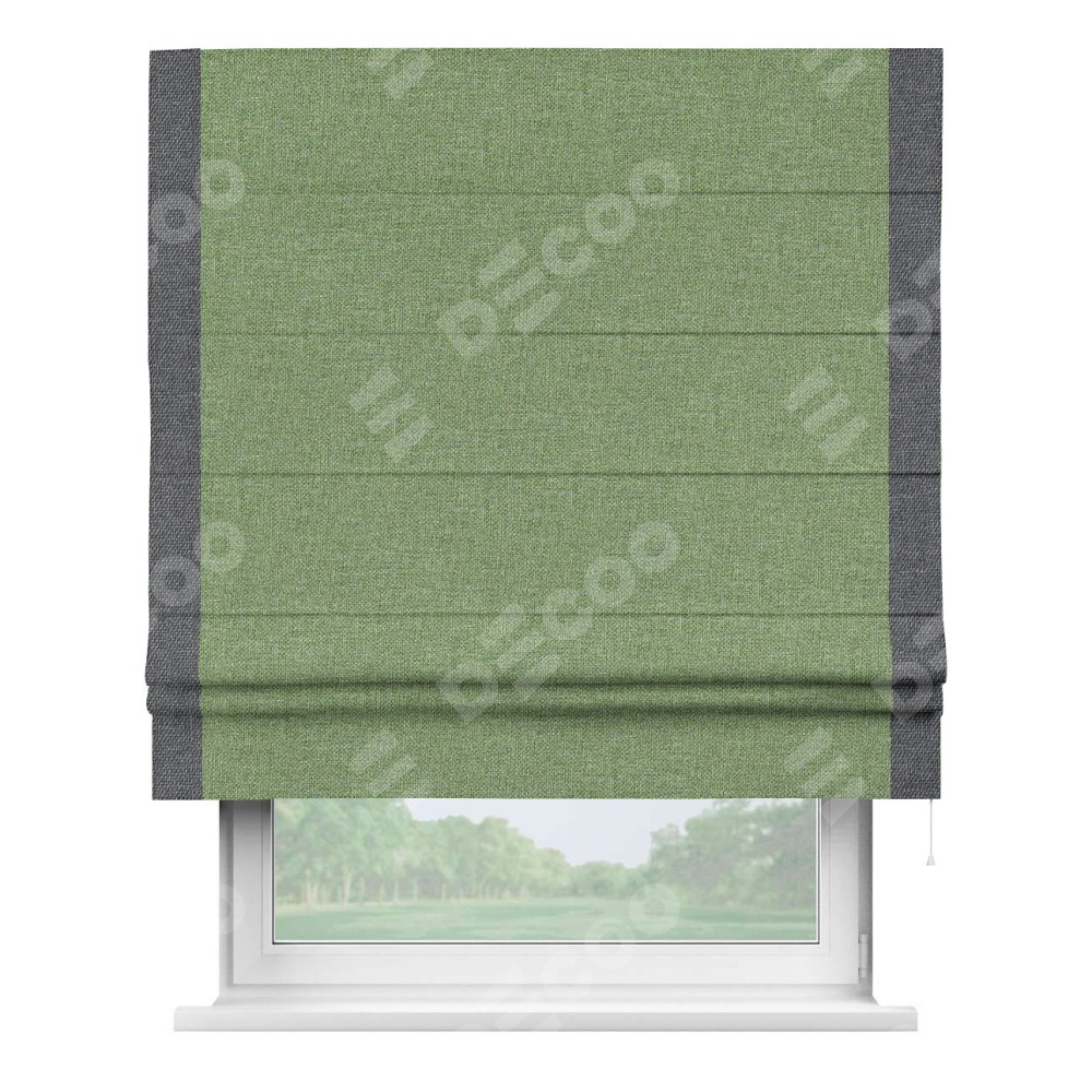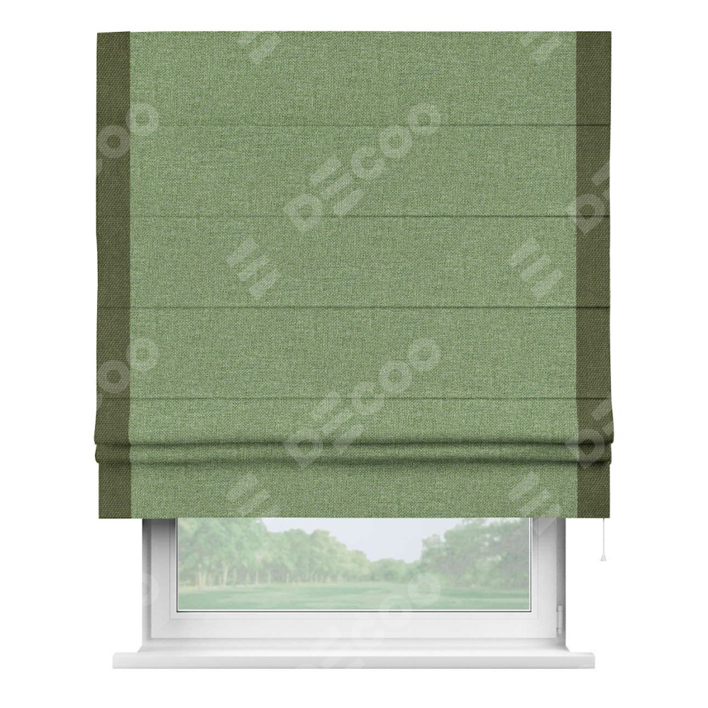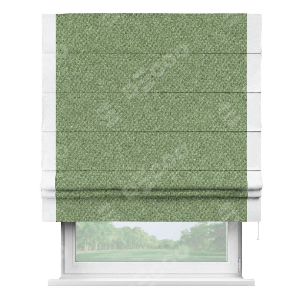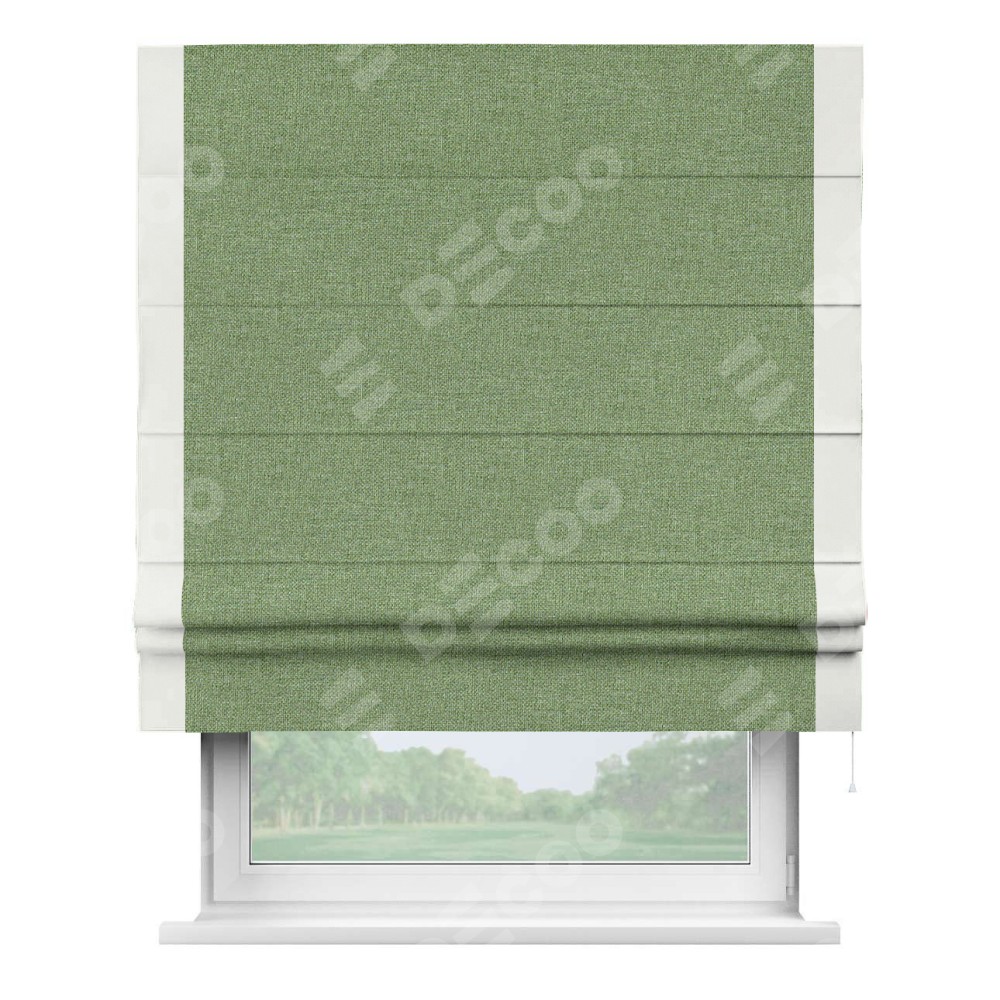 Римская штора «Cortin» для проёма, лён димаут светло-салатовый с кантом Стрим Дуо