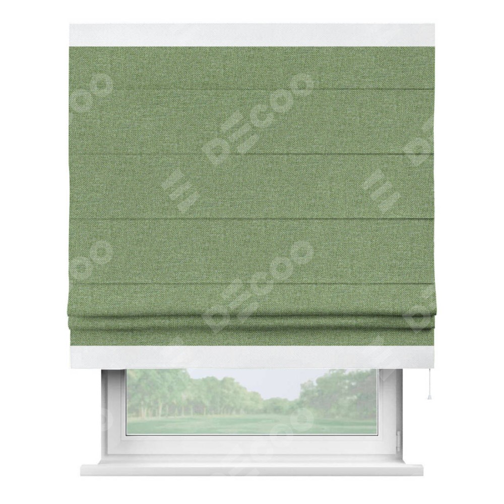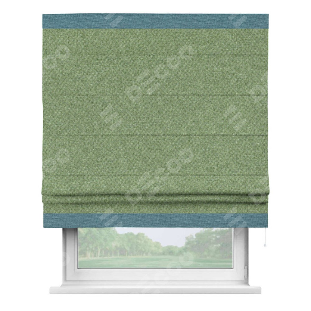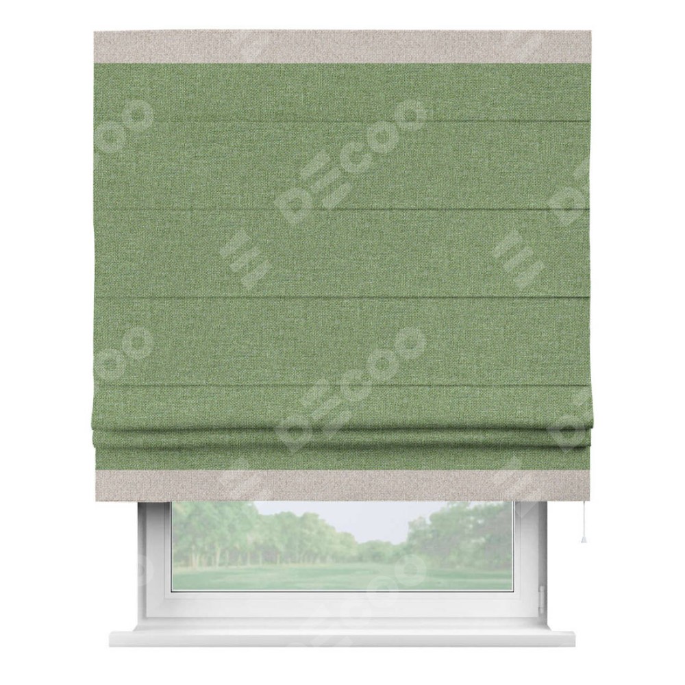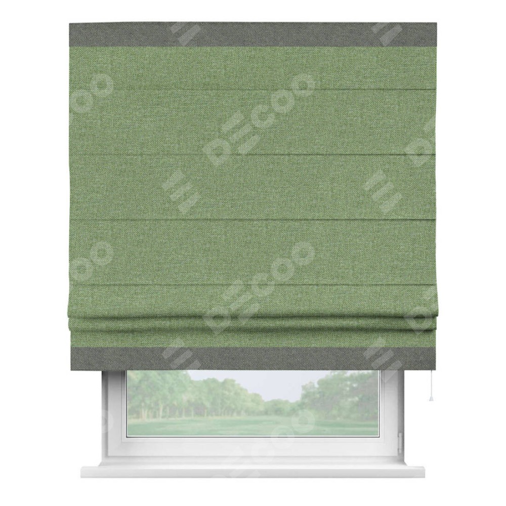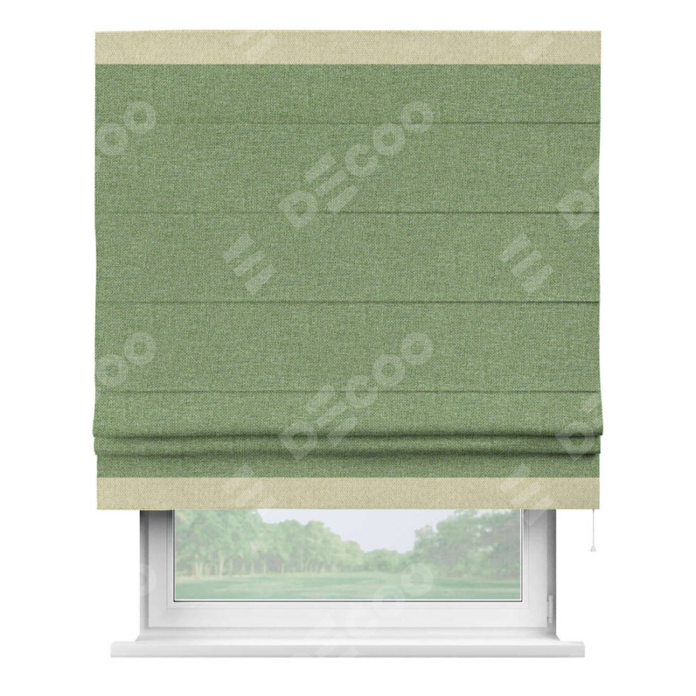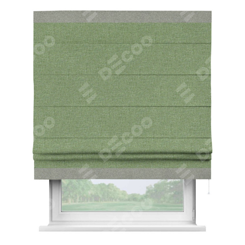 Римская штора «Cortin» для проёма, лён димаут светло-салатовый с кантом Горизонт