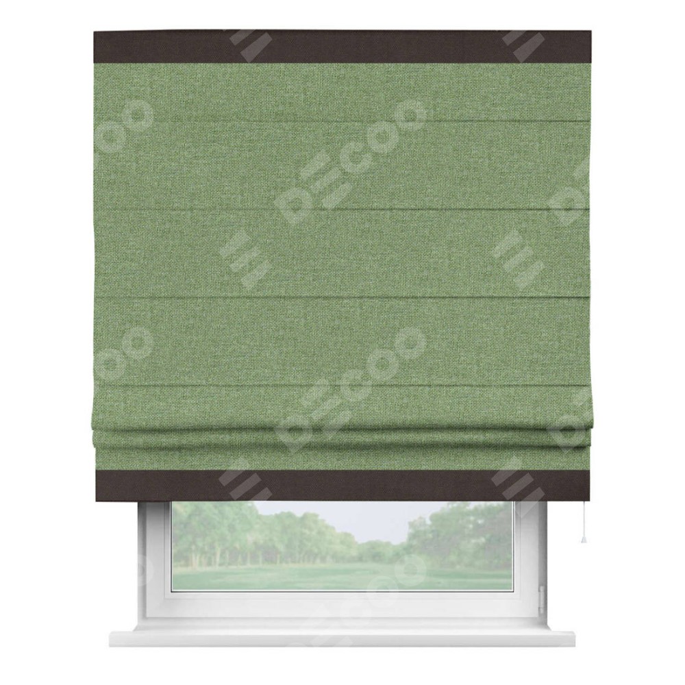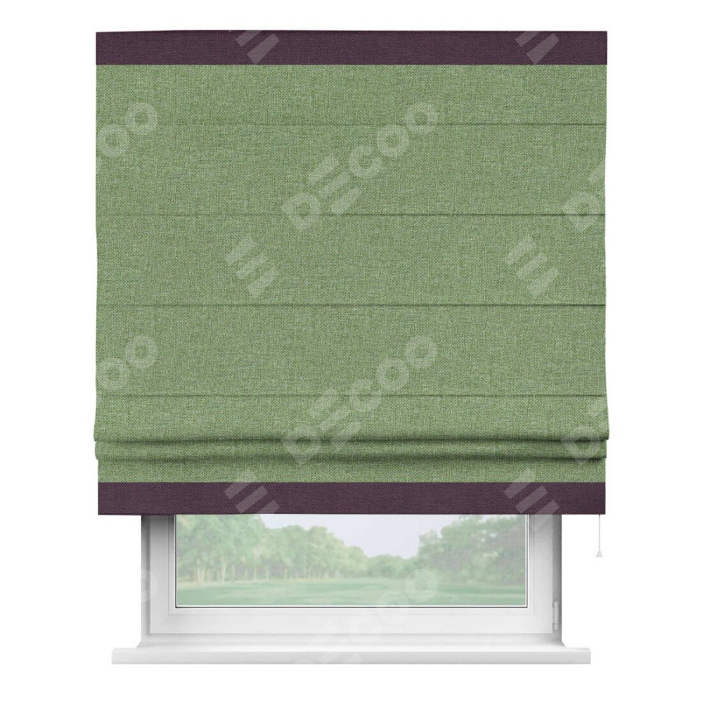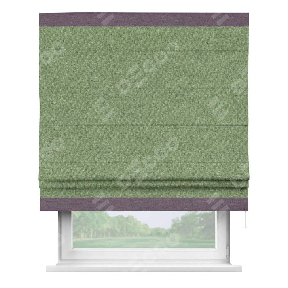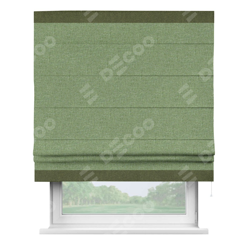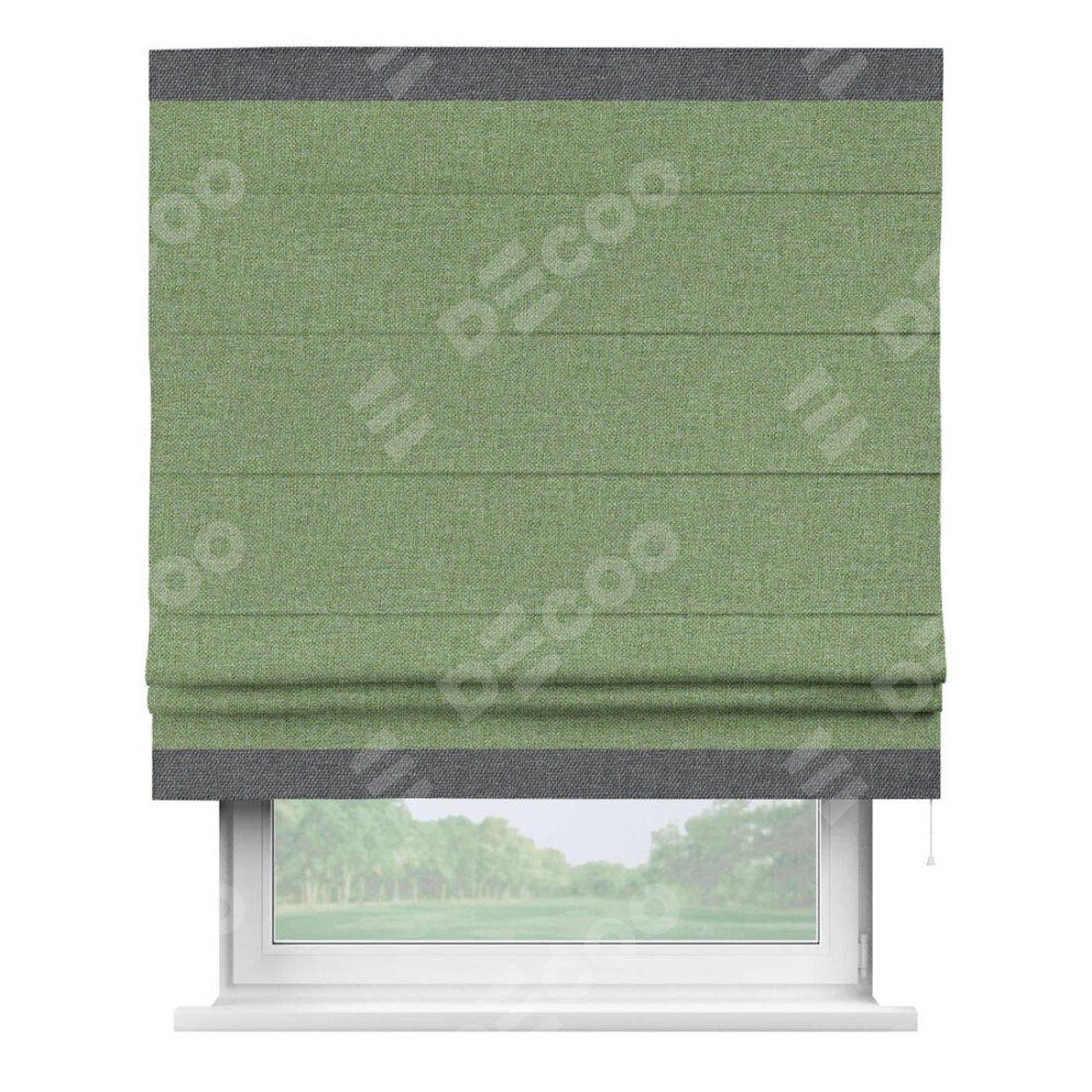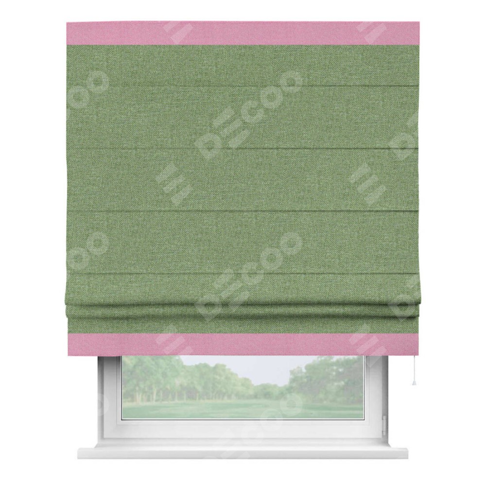 Римская штора «Cortin» для проёма, лён димаут светло-салатовый с кантом Горизонт