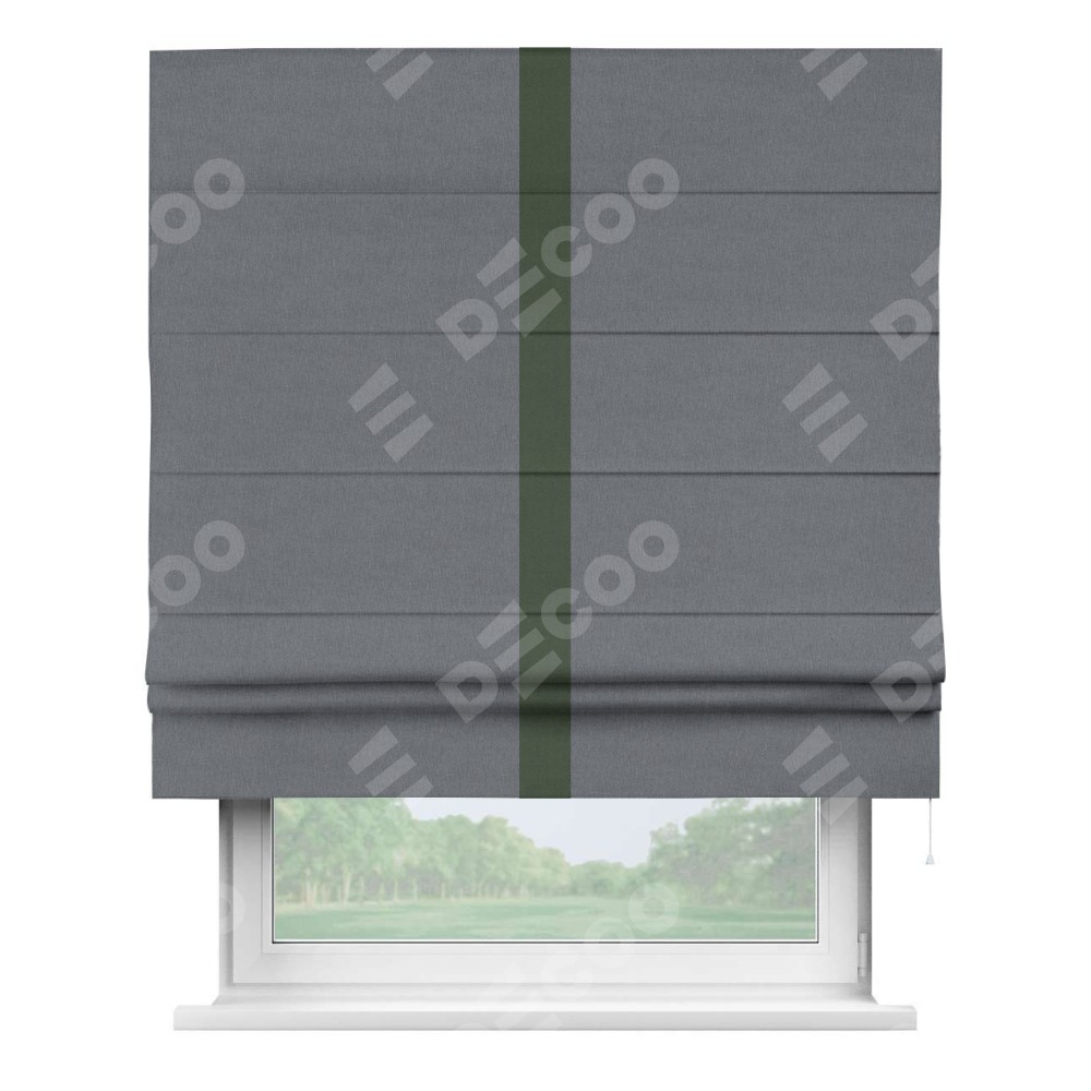 Римская штора «Кортин» с кантом Хайвэй, для проема, лён блэкаут тёмно-серый