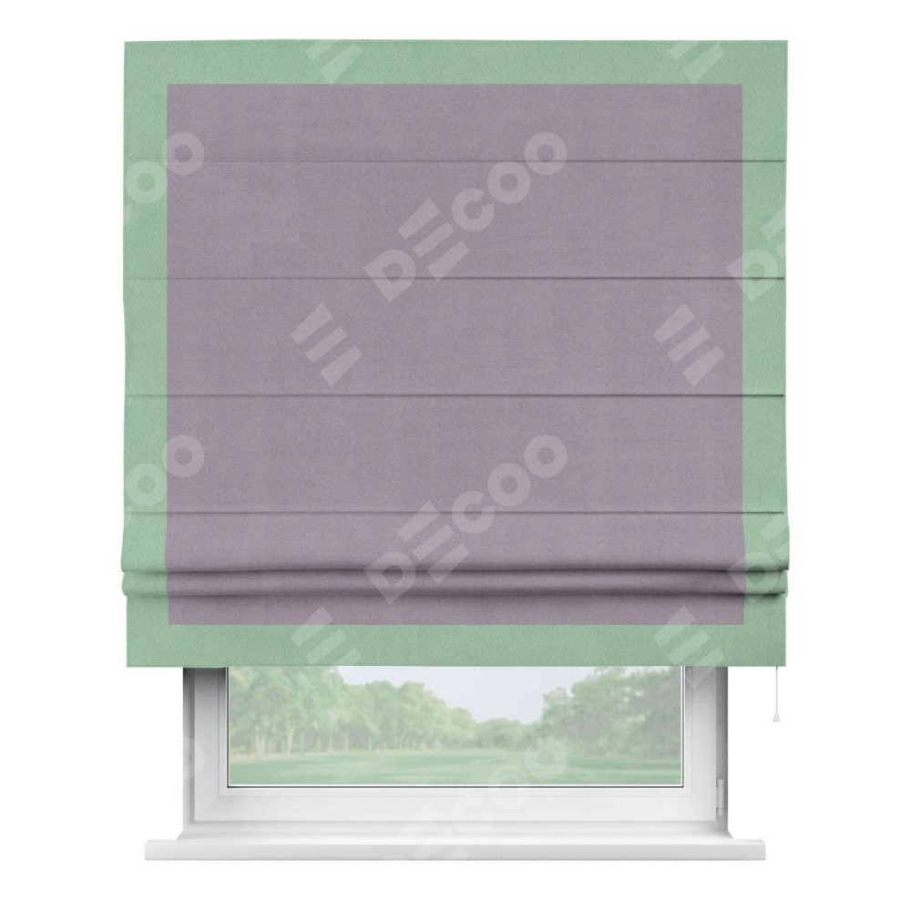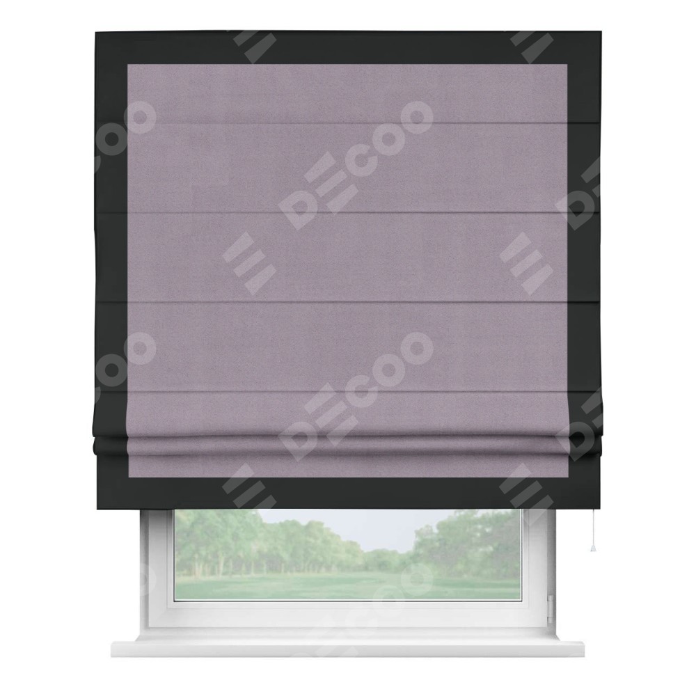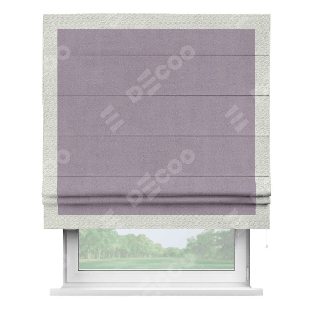 Римская штора «Кортин» для проёма, блэкаут однотонный лиловый с кантом Чесс