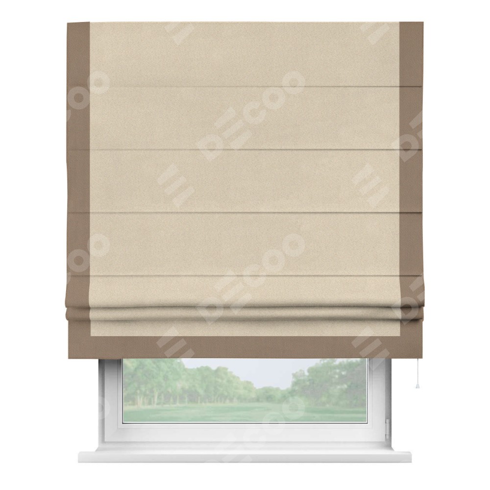 Римская штора «Cortin» для проёма, блэкаут однотонный кофейно-бежевый с кантом Виктория