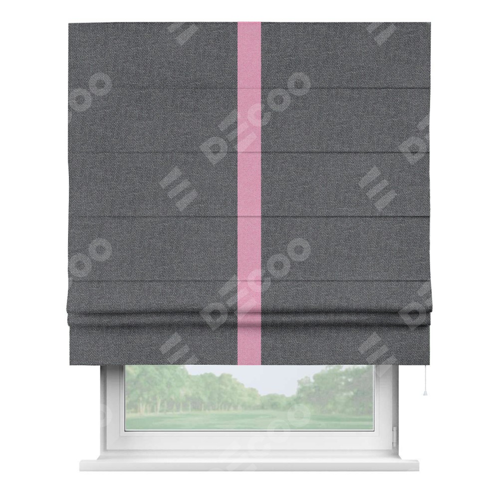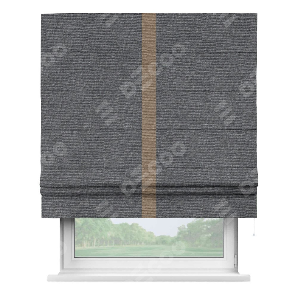 Римская штора «Кортин» для проёма, лён димаут графит с кантом Хайвэй