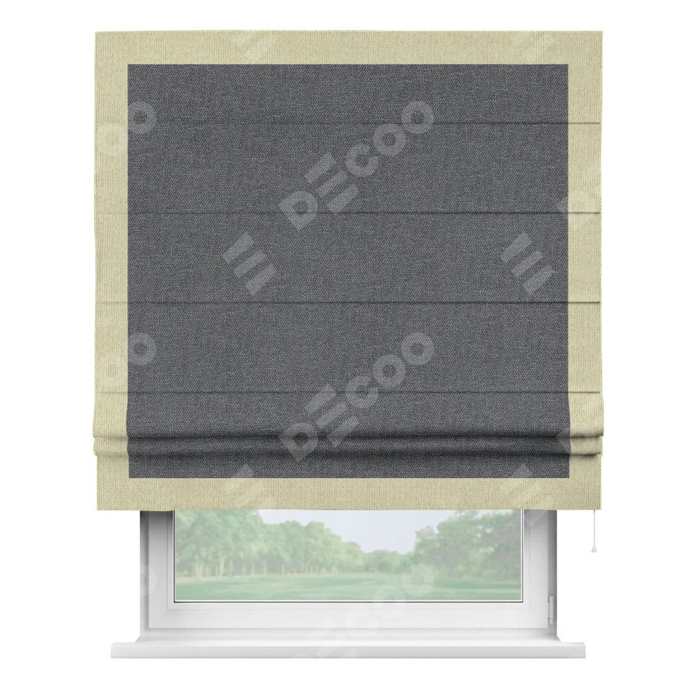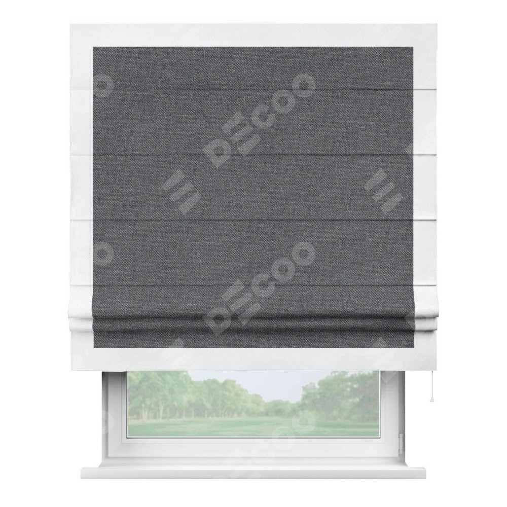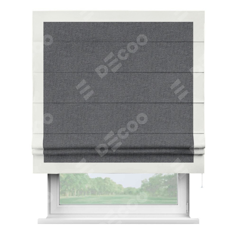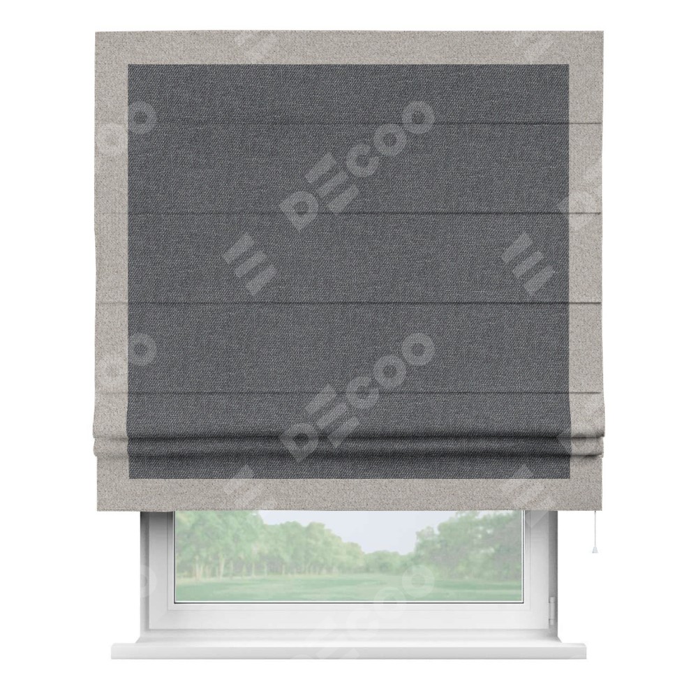 Классическая римская штора производителя «Cortin», пошита из ткани лён димаут графит, артикул: 140644. Имеет универсальный механизм и подходит для монтажа: на потолок, на стену и в нишу.