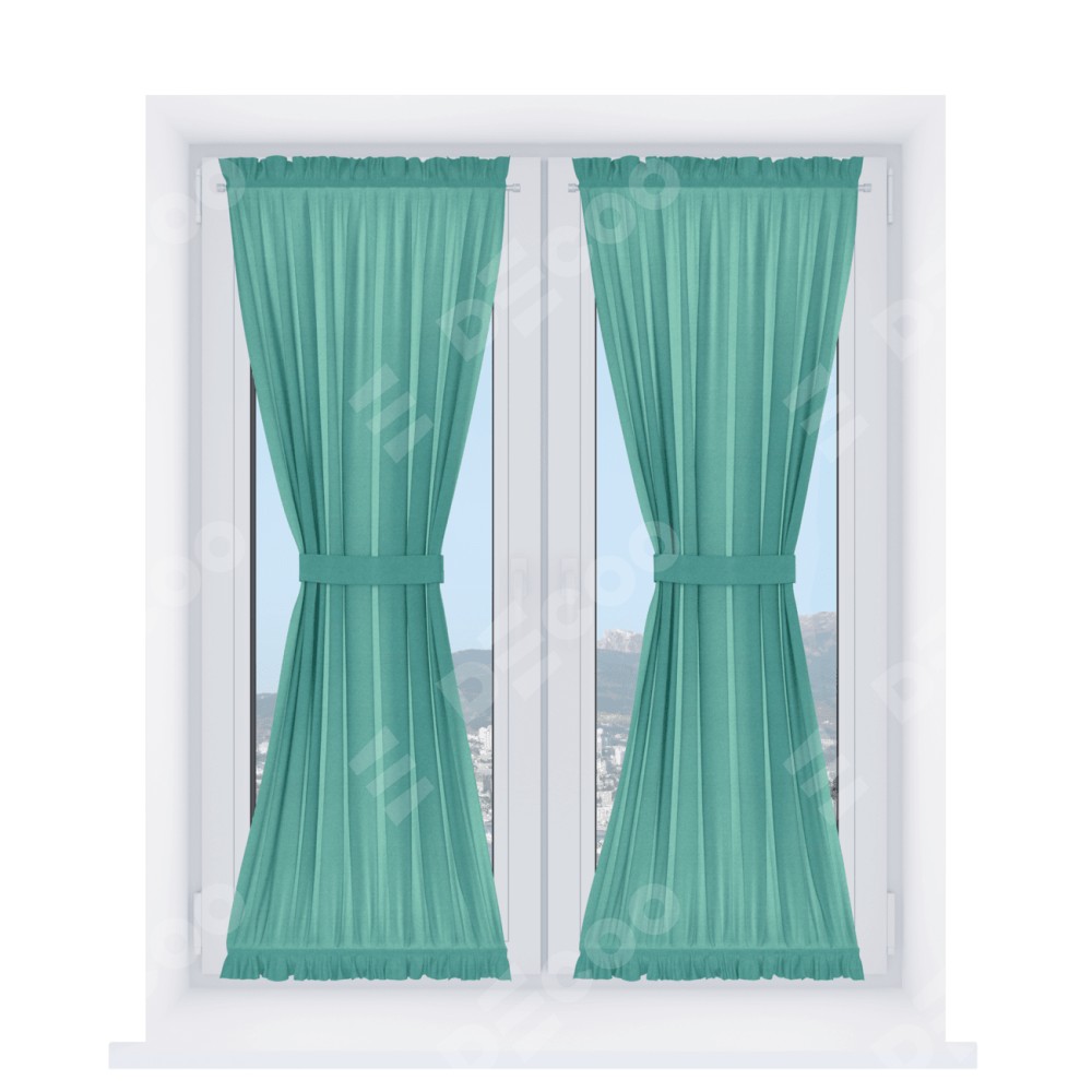 Штора «Песочные часы» производителя «Cortin», используется для створок окон и дверей, пошита из ткани лён димаут бирюзовый, артикул ткани 23.