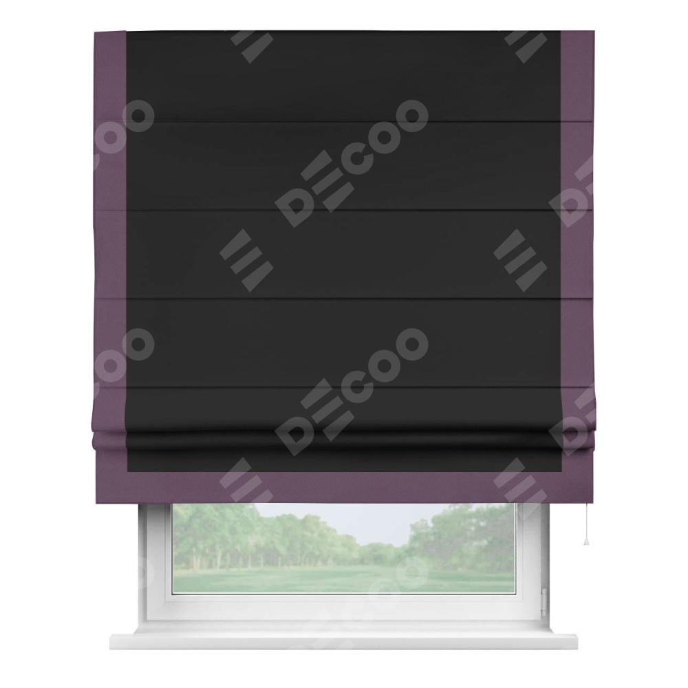 Римская штора «Cortin» для проёма, блэкаут однотонный черный с кантом Виктория