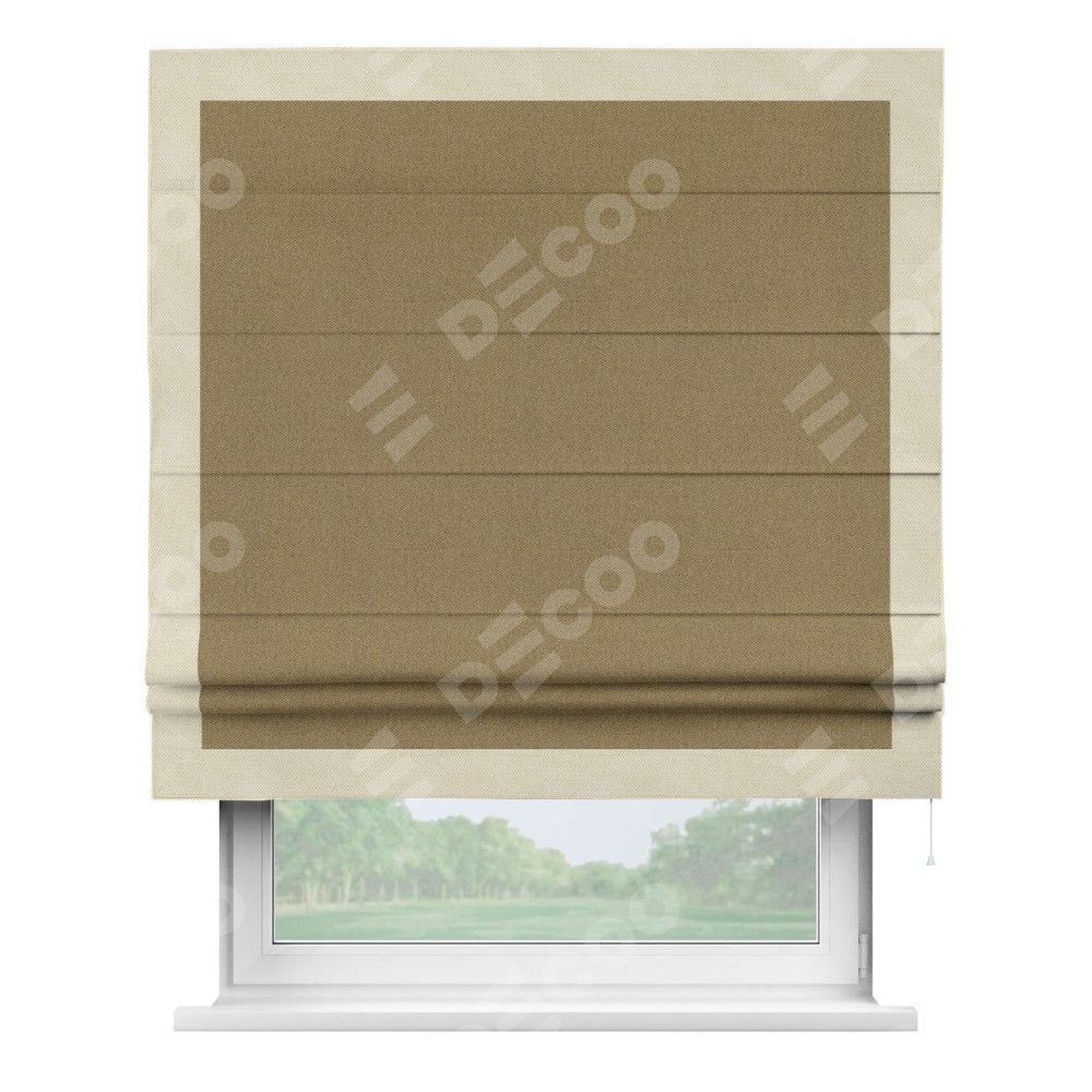 Римская штора «Кортин» с кантом Чесс, для проема, ткань лён димаут, оливковый