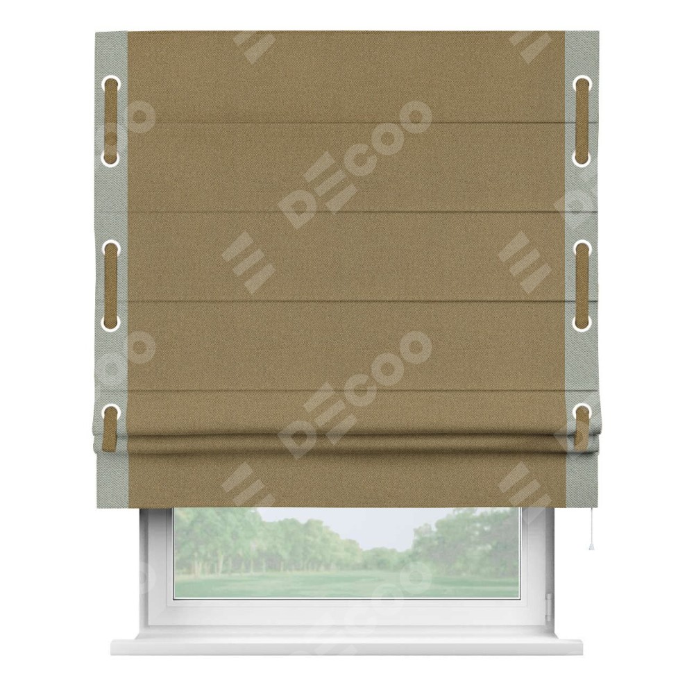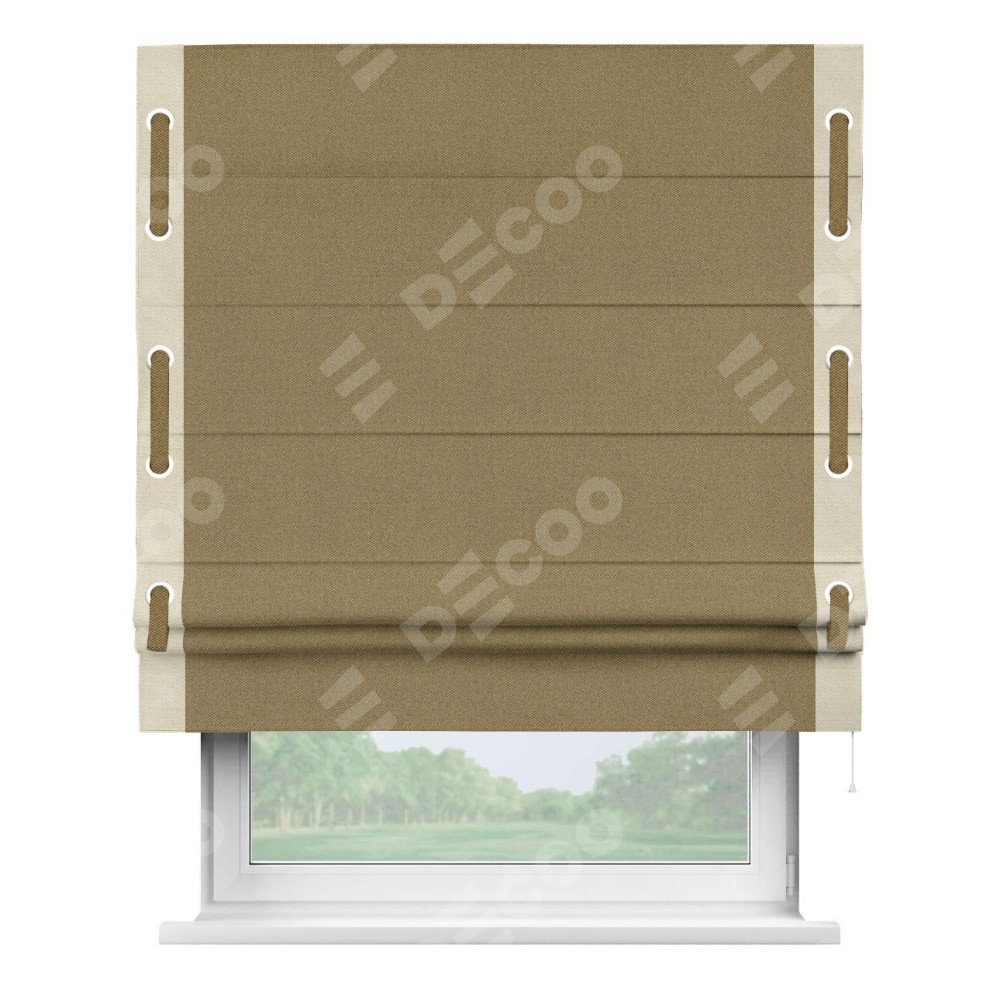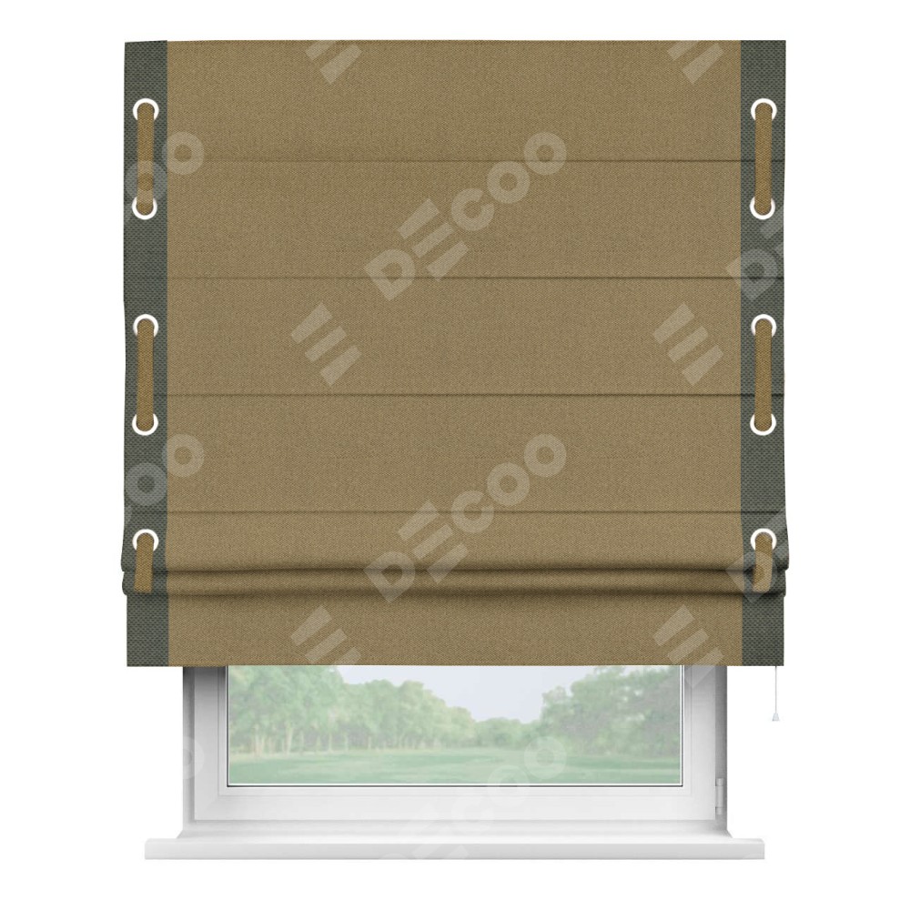 Римская штора «Кортин» с кантом Стрим Дуо (люверсы с пояском), для проема, ткань лён димаут, оливковый