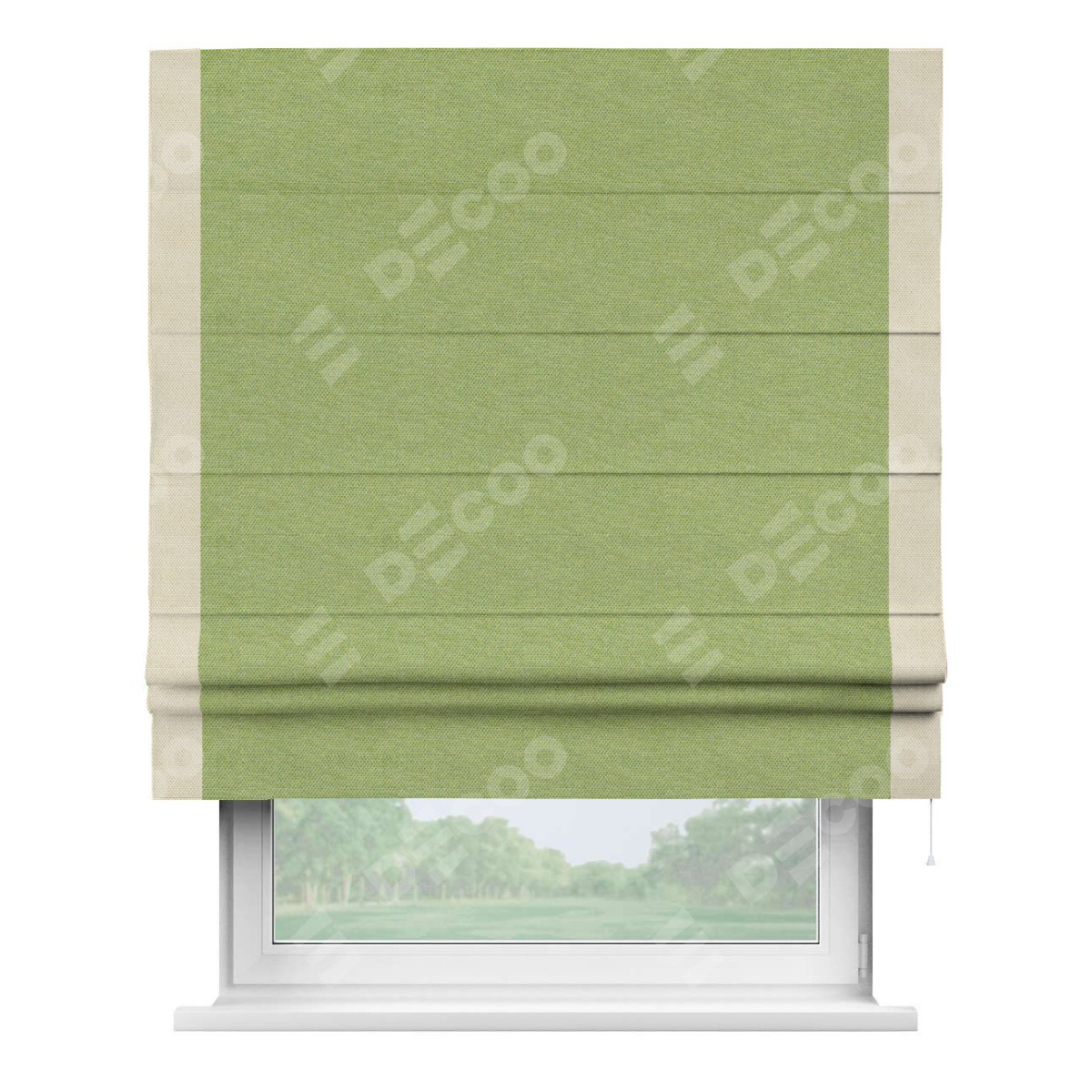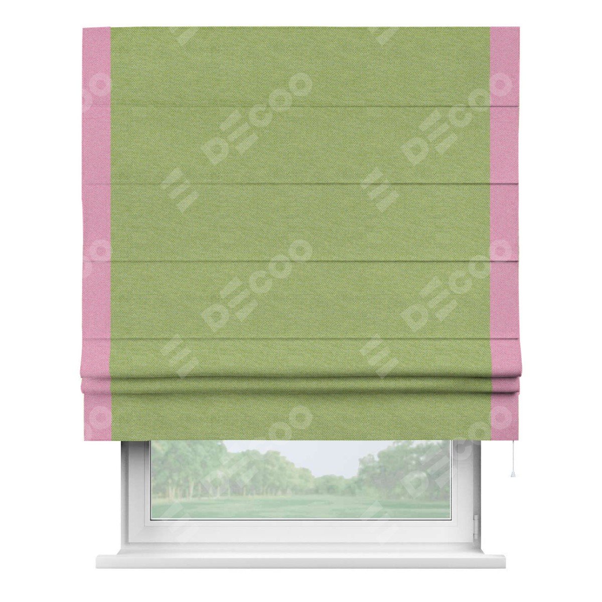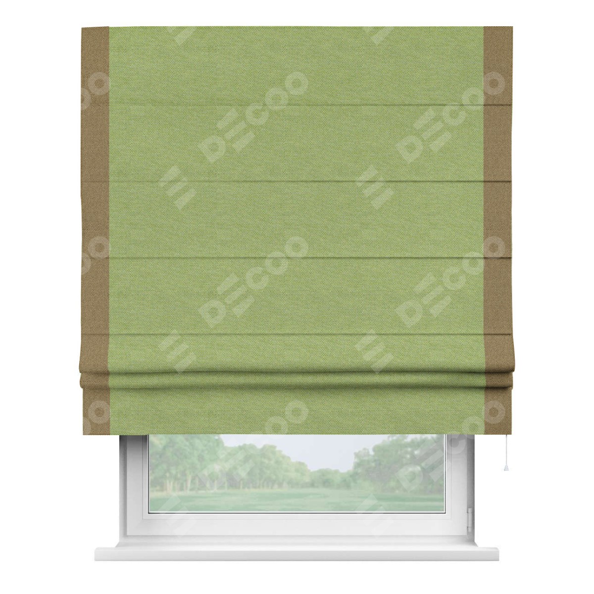 Римская штора «Кортин» с кантом Стрим Дуо, для проема, ткань лён димаут, салатовый