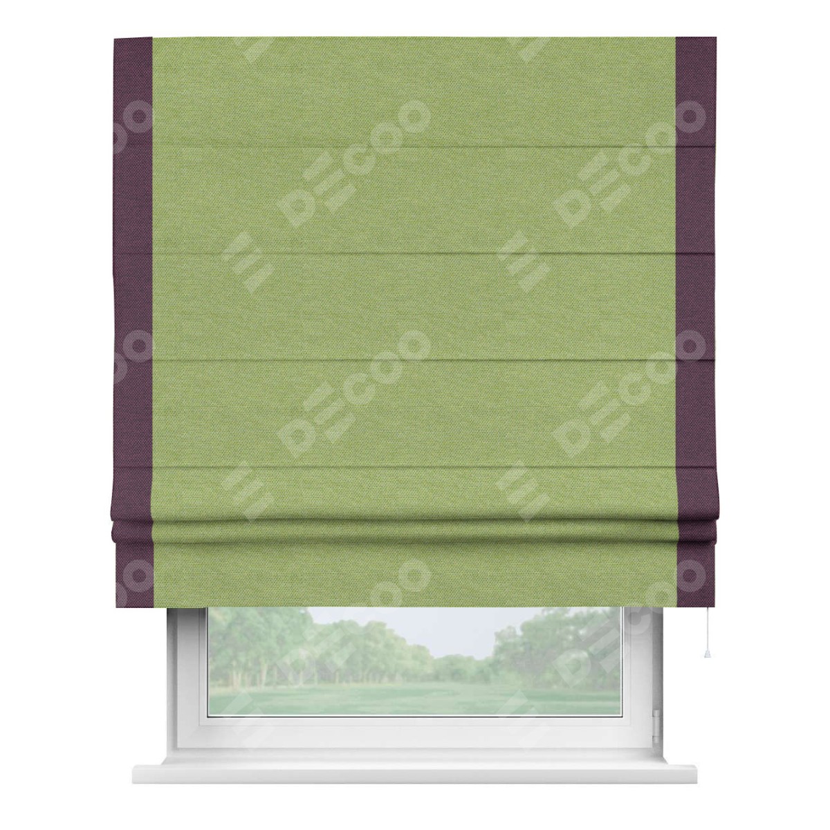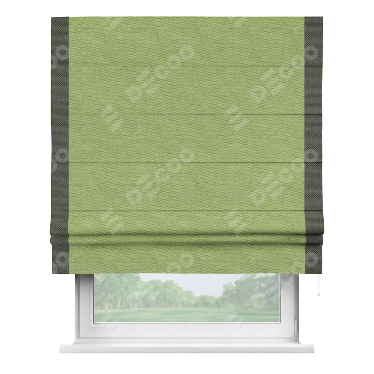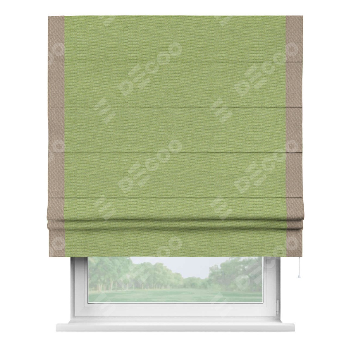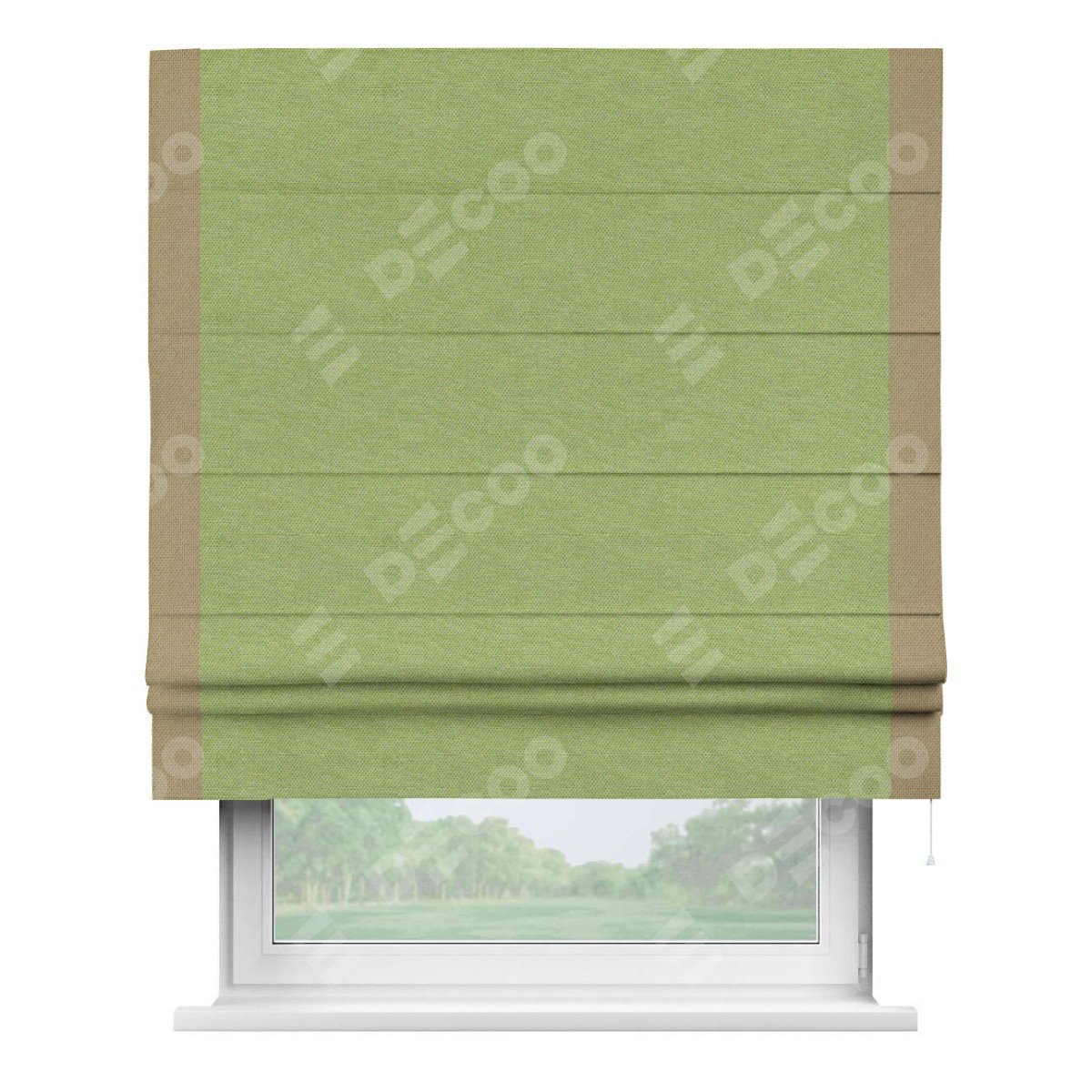 Римская штора «Кортин» с кантом Стрим Дуо, для проема, ткань лён димаут, салатовый