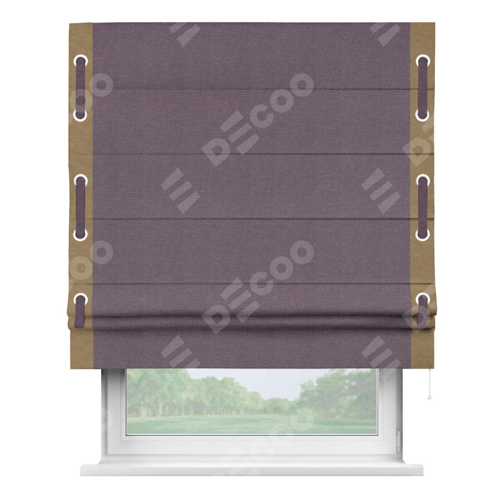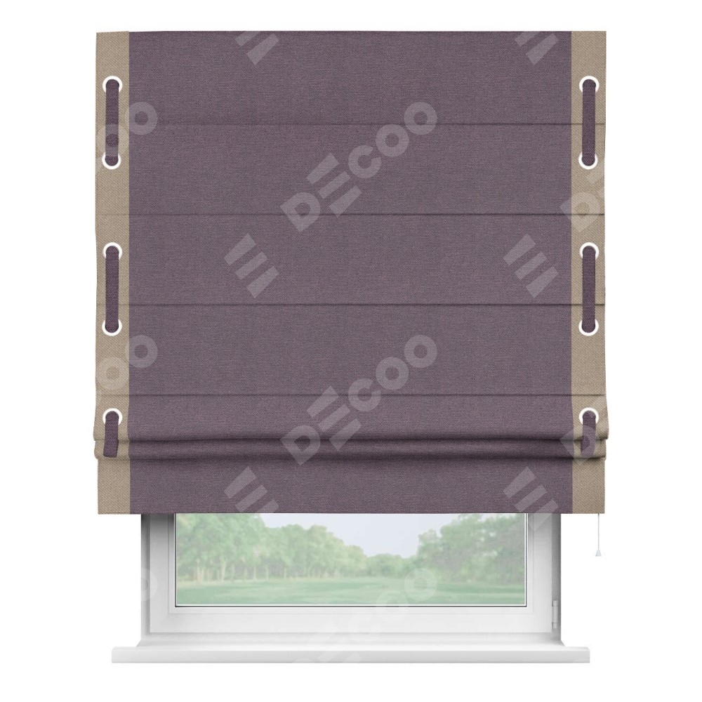 Римская штора «Кортин» с кантом Стрим Дуо (люверсы с пояском), для проема, ткань лён димаут, светло-фиолетовый