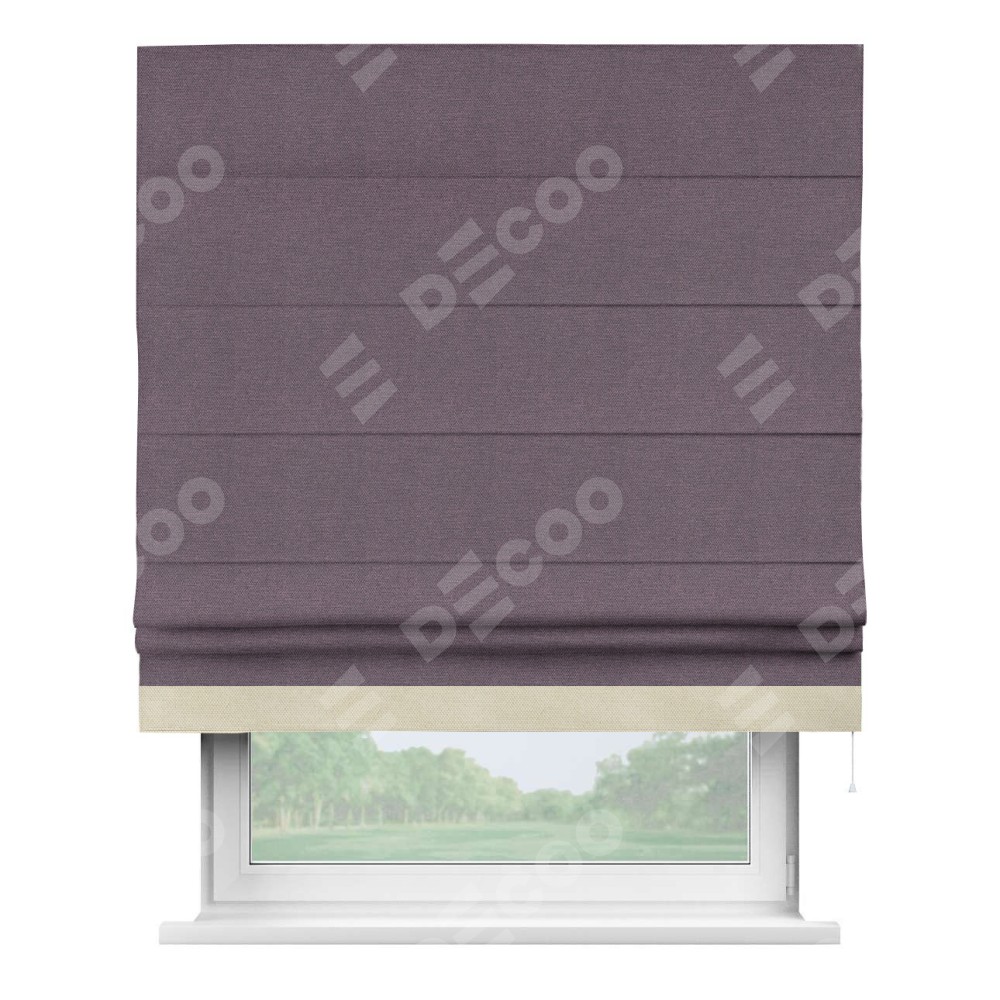 Римская штора «Кортин» с кантом Джестер, для проема, ткань лён димаут, светло-фиолетовый
