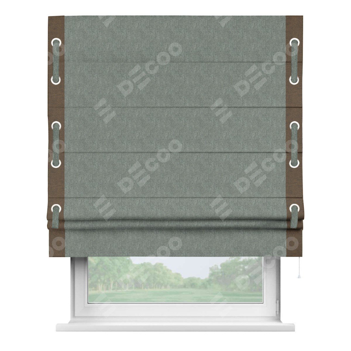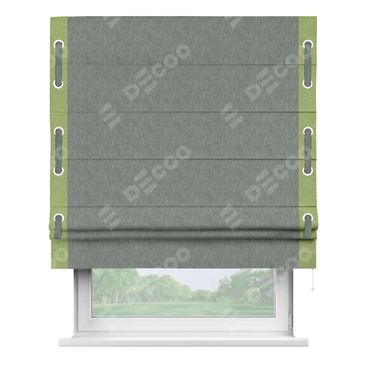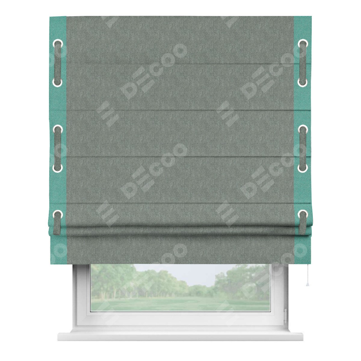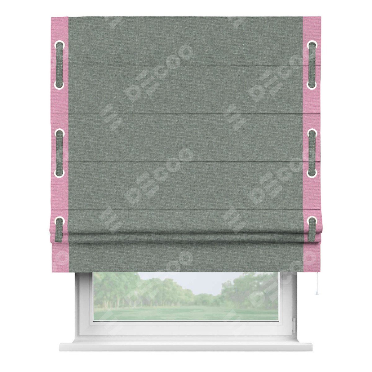 Римская штора «Кортин» с кантом Стрим Дуо (люверсы с пояском), для проема, ткань лён димаут, серый