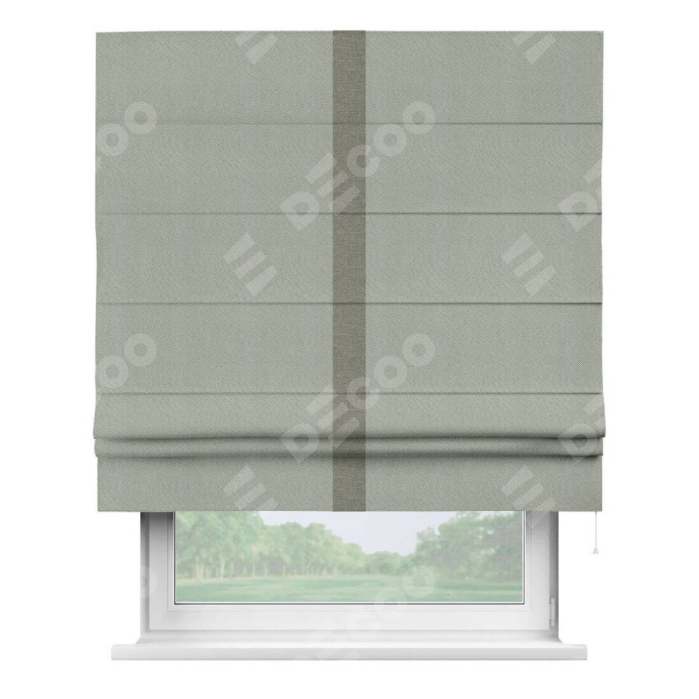 Римская штора «Кортин» отделка кантом Хайвэй, для проема, ткань лён димаут, в сером цвете