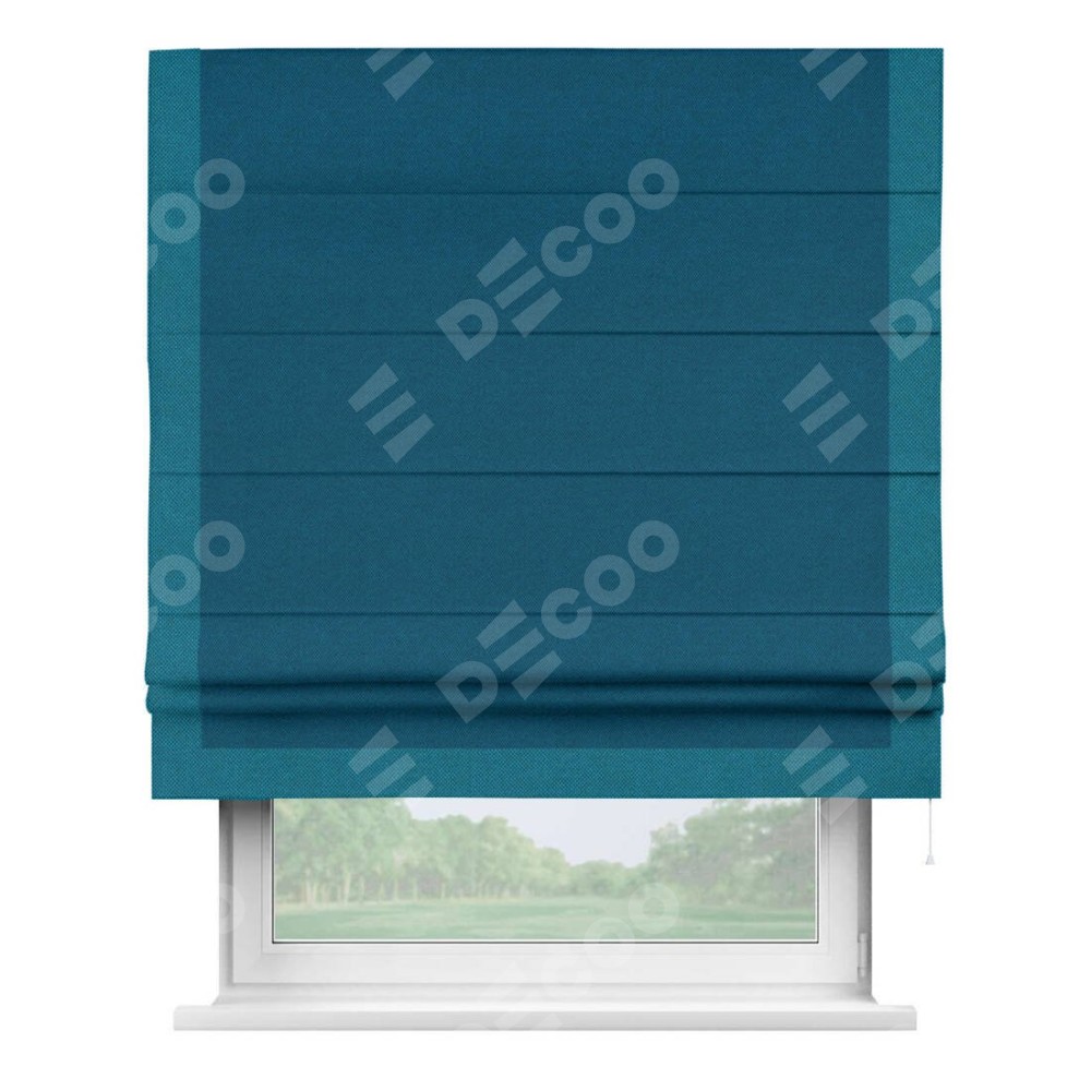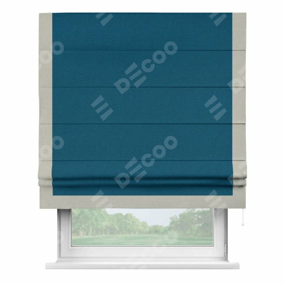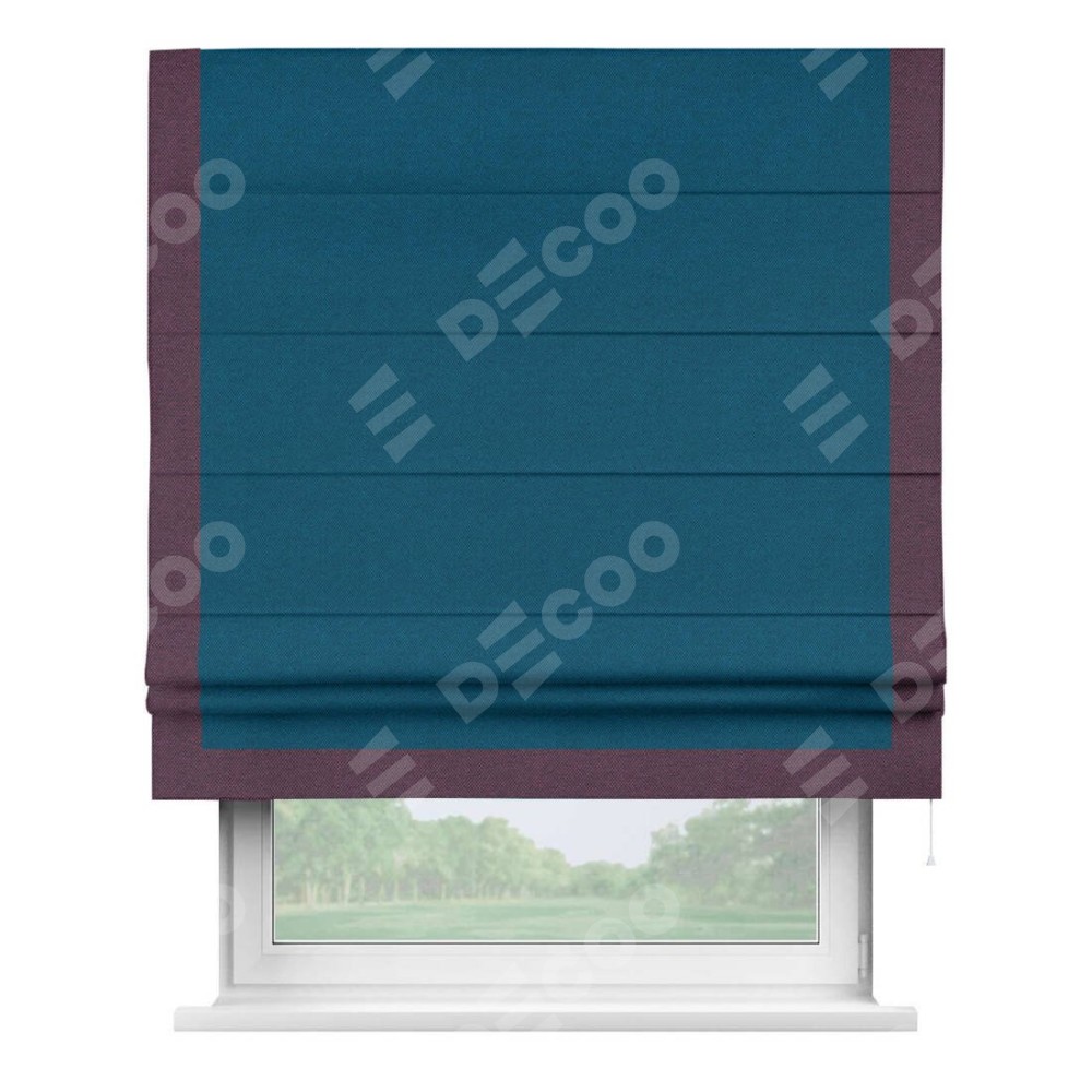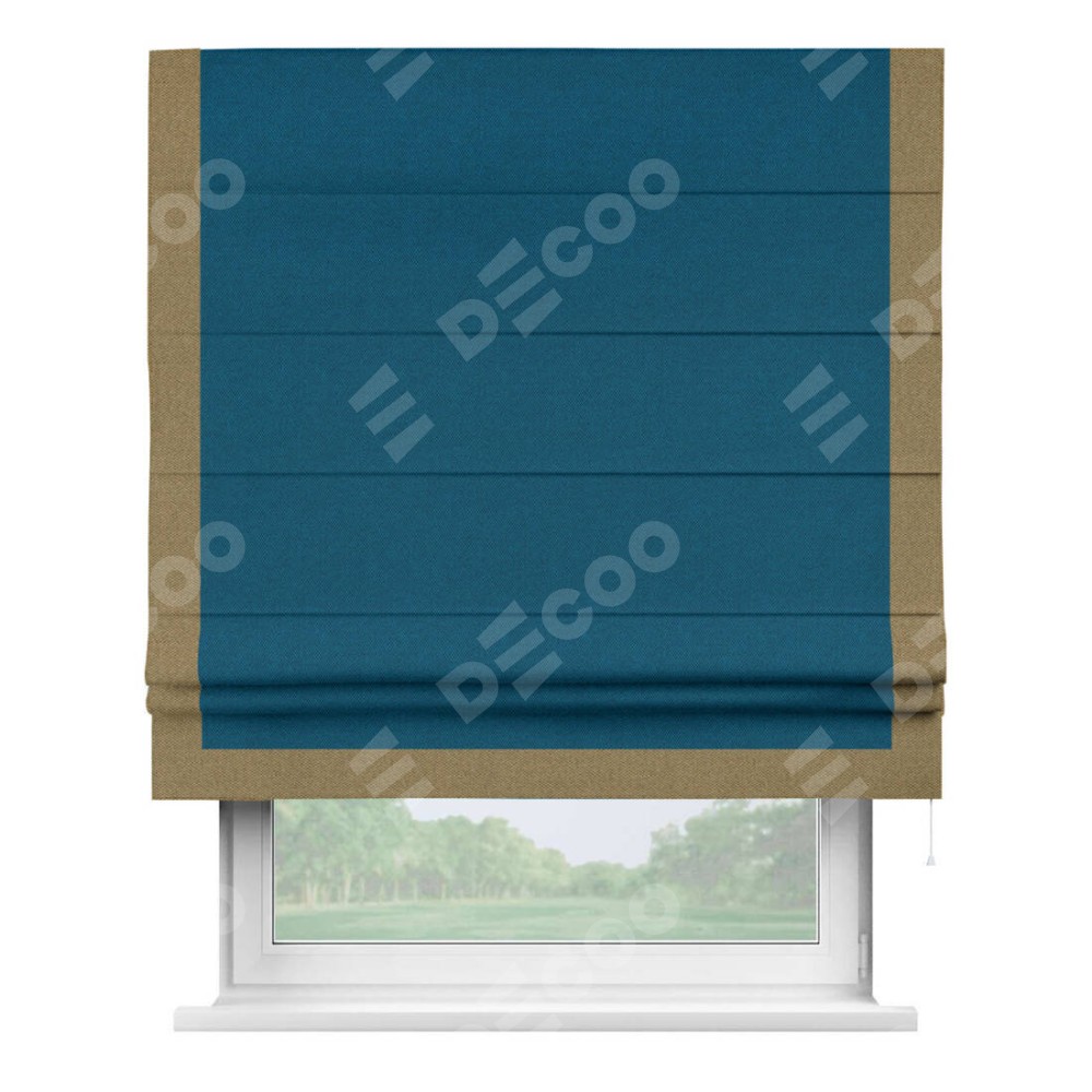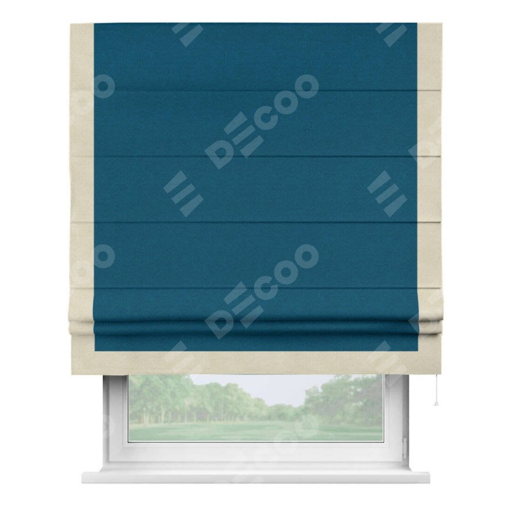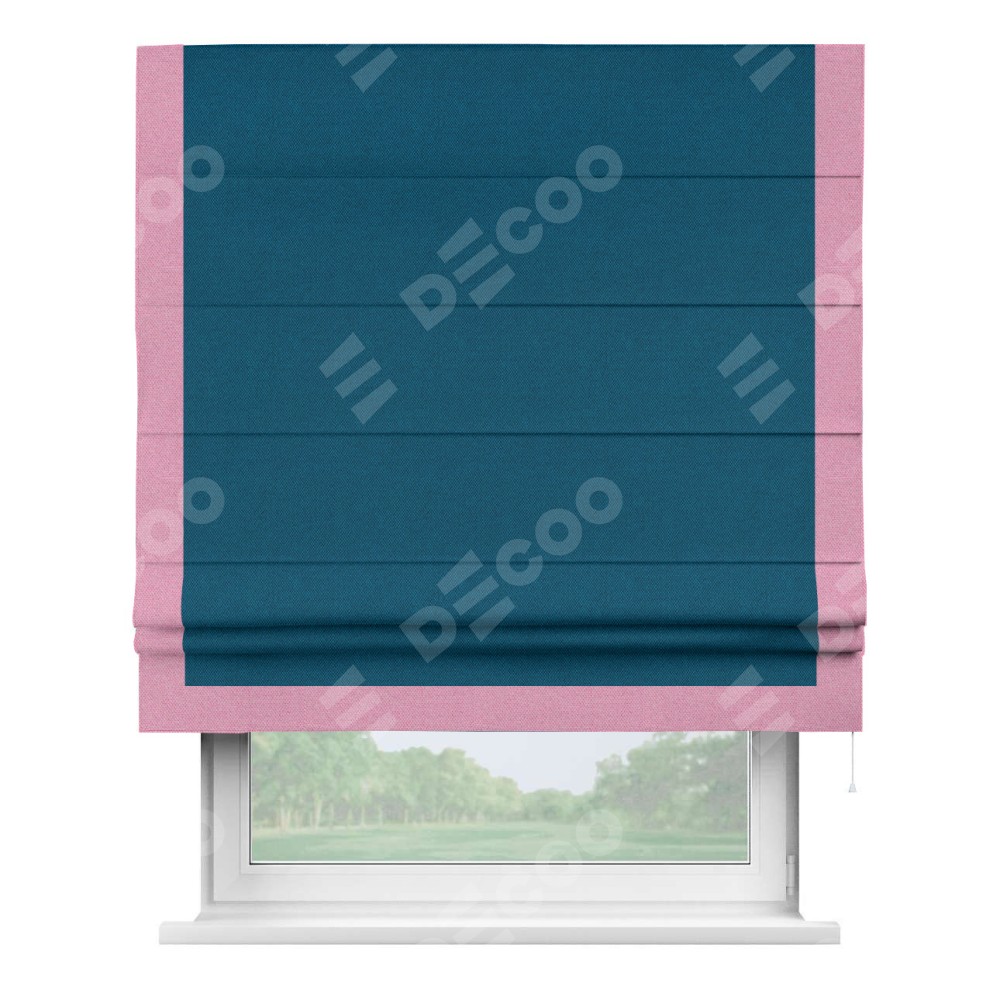 Римская штора «Кортин» с кантом Виктория, для проема, ткань лён димаут, синий