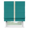 Римская штора производителя «Cortin», используется для проёма, пошита из ткани лён димаут тёмно-бирюзовый, артикул 318. Отделка шторы кантом «Хайвэй», ткань для канта используется из льна димаут разной расцветки на выбор. Имеет универсальный механизм и подходит для монтажа: на потолок, на стену и в нишу.