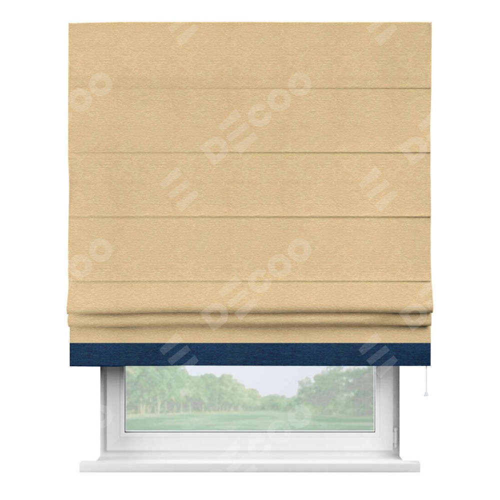 Римская штора производителя «Cortin», используется для проёма, пошита из ткани софт однотонный бежевый, артикул 4202 05. Отделка шторы кантом «Джестер», ткань для канта используется из софта разной расцветки на выбор. Имеет универсальный механизм и подходит для монтажа: на потолок, на стену и в нишу.