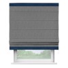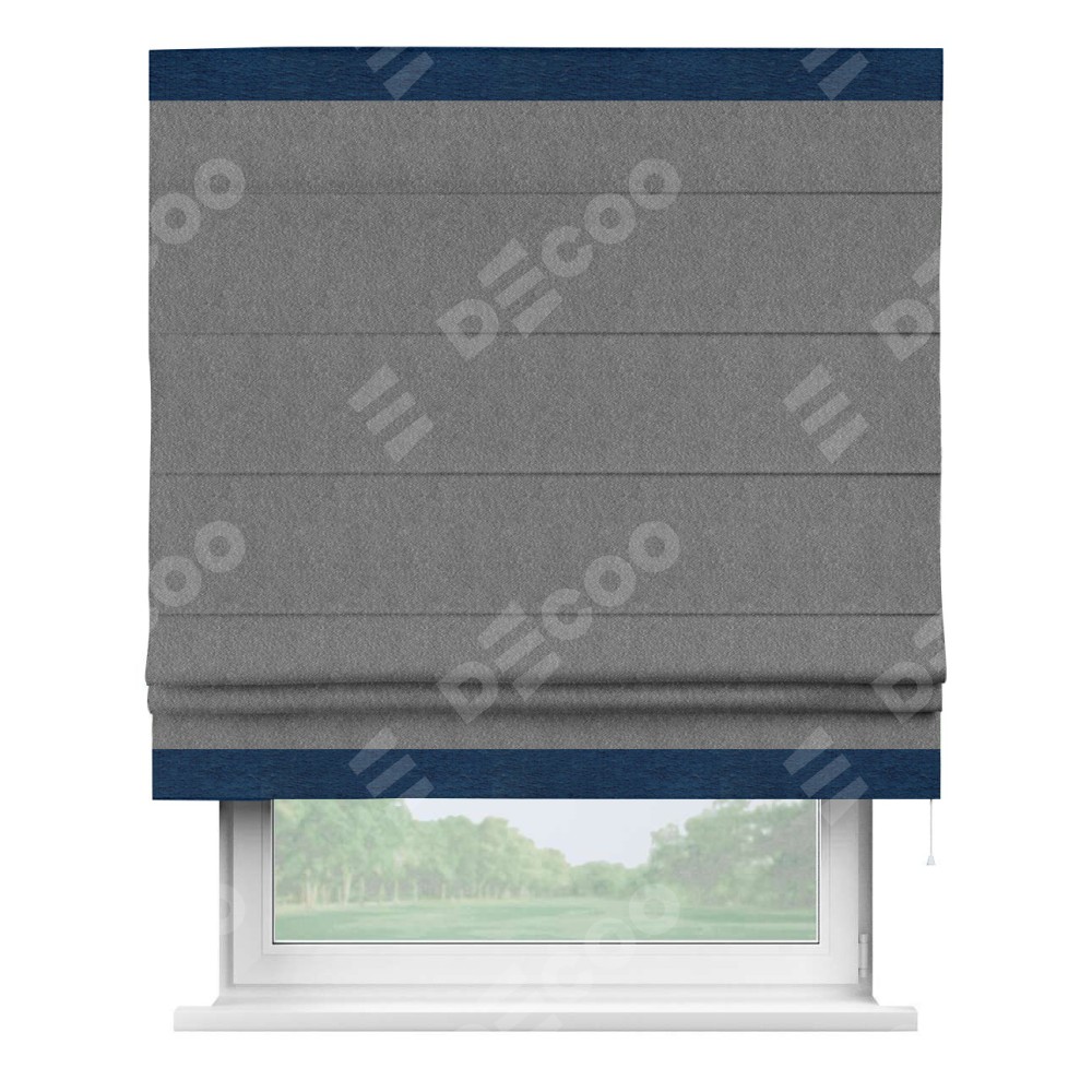 Римская штора производителя «Cortin», используется для проёма, пошита из ткани софт однотонный серый, артикул 70605. Отделка шторы кантом «Горизонт», ткань для канта используется из софта разной расцветки на выбор. Имеет универсальный механизм и подходит для монтажа: на потолок, на стену и в нишу.