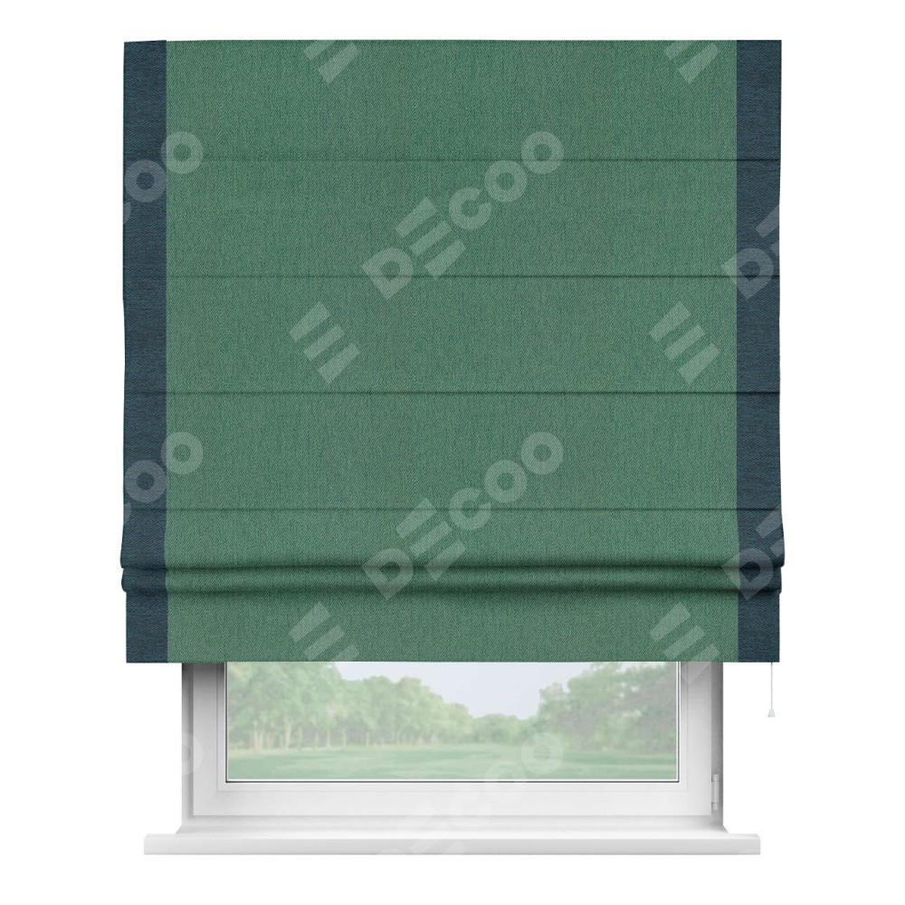 Римская штора «Кортин» с кантом Стрим Дуо, для проема, ткань твид блэкаут, зелёный