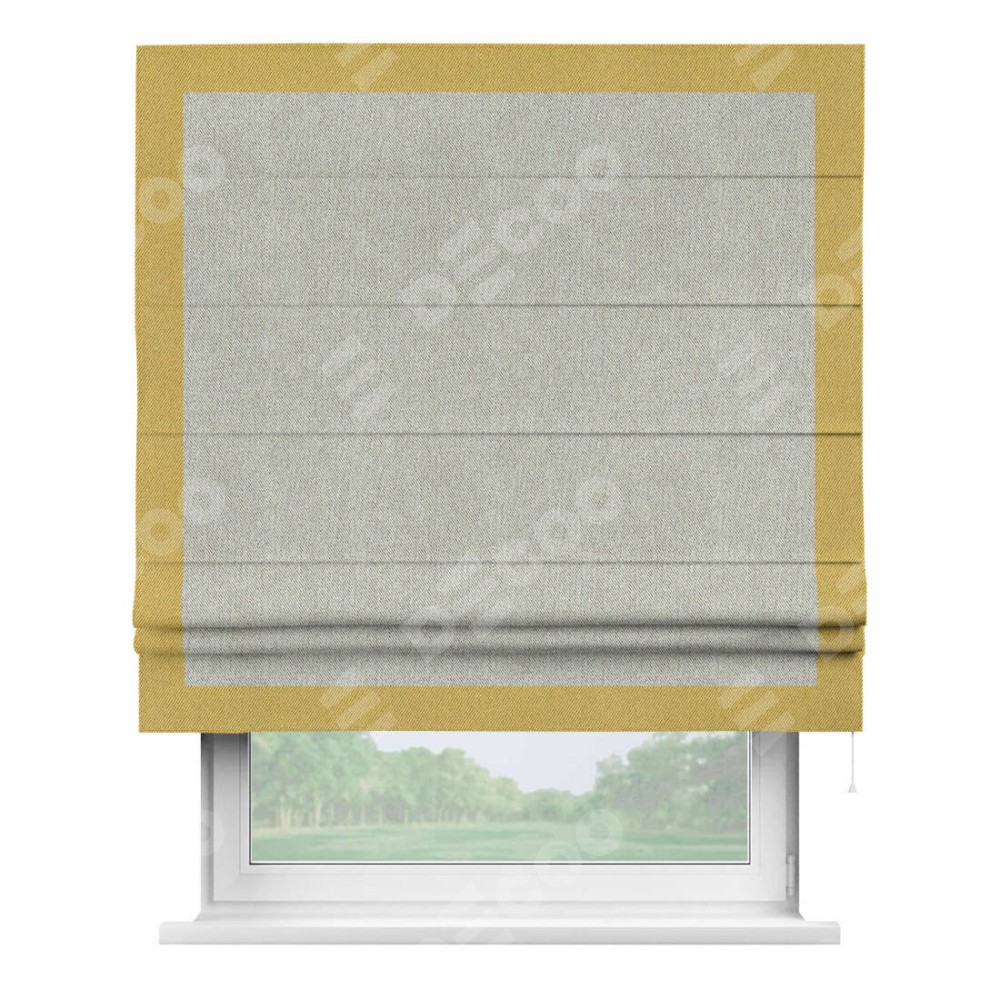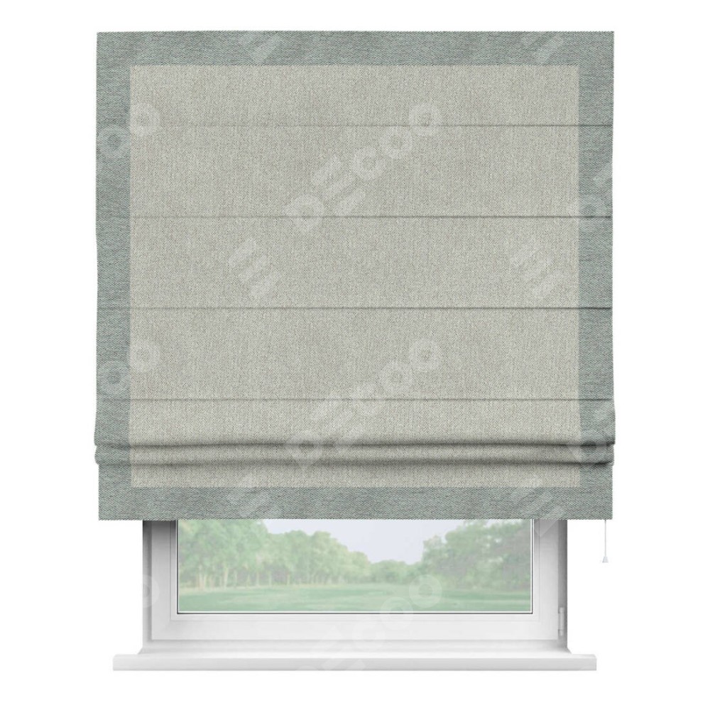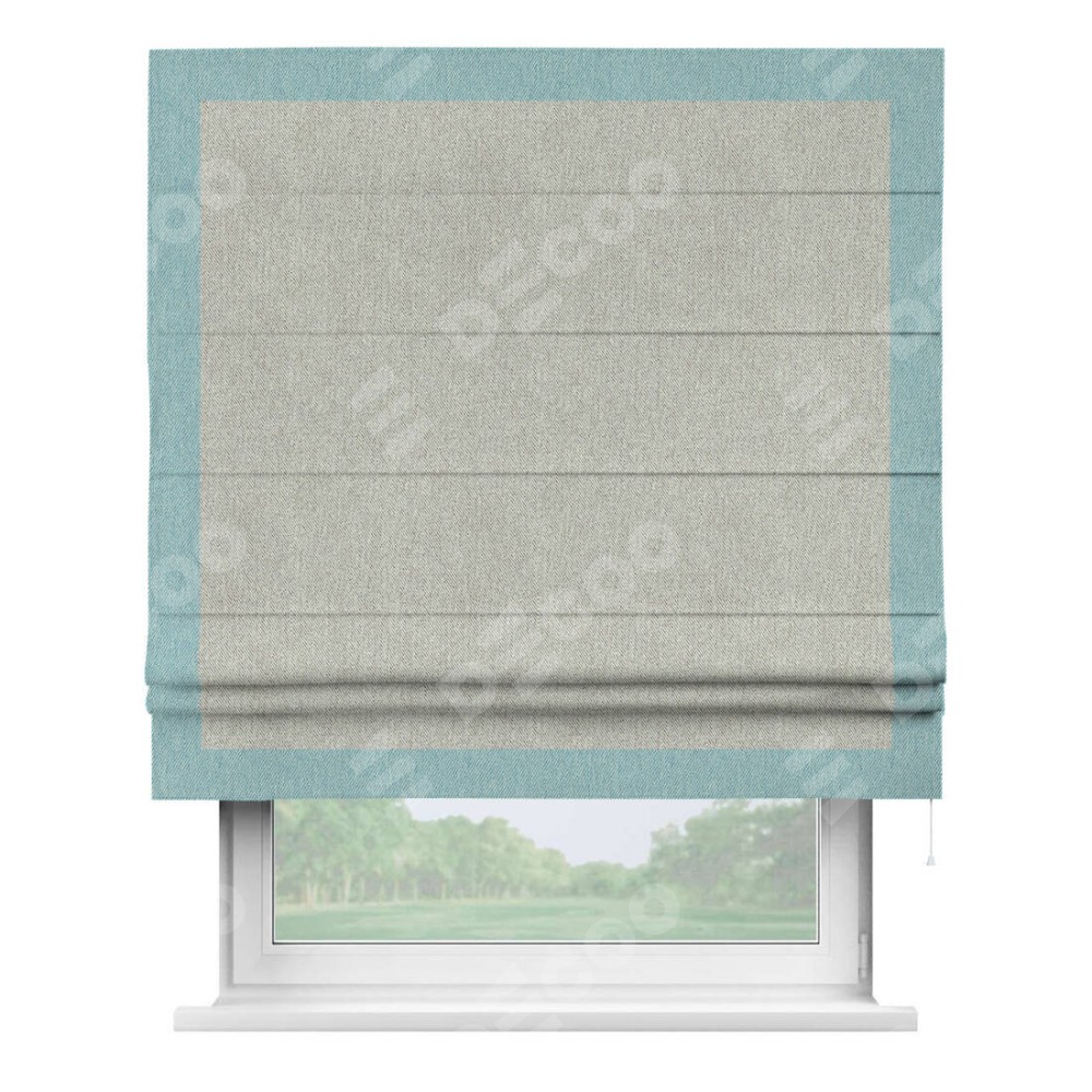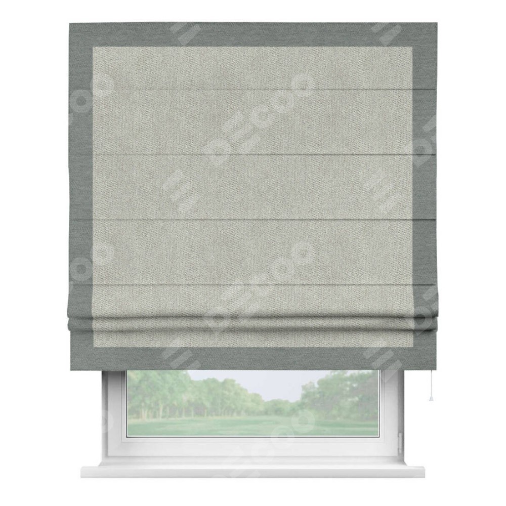 Римская штора «Кортин» с кантом Чесс, для проема, ткань твид блэкаут, коричнево-серый