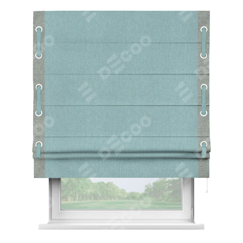 Римская штора «Кортин» с кантом Стрим Дуо (люверсы с пояском), для проема, ткань твид блэкаут, небесно-голубой