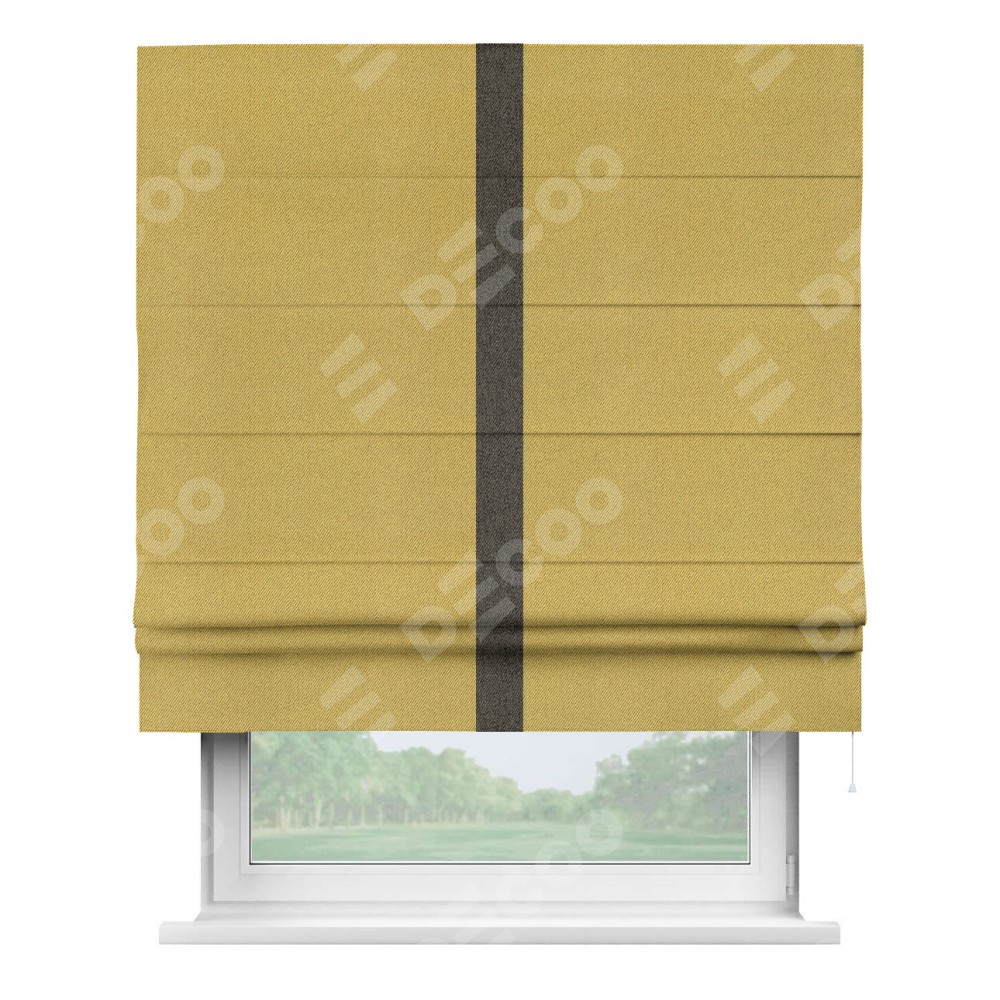 Римская штора «Кортин» с кантом Хайвэй, для проема, ткань твид блэкаут, пыльная горчица
