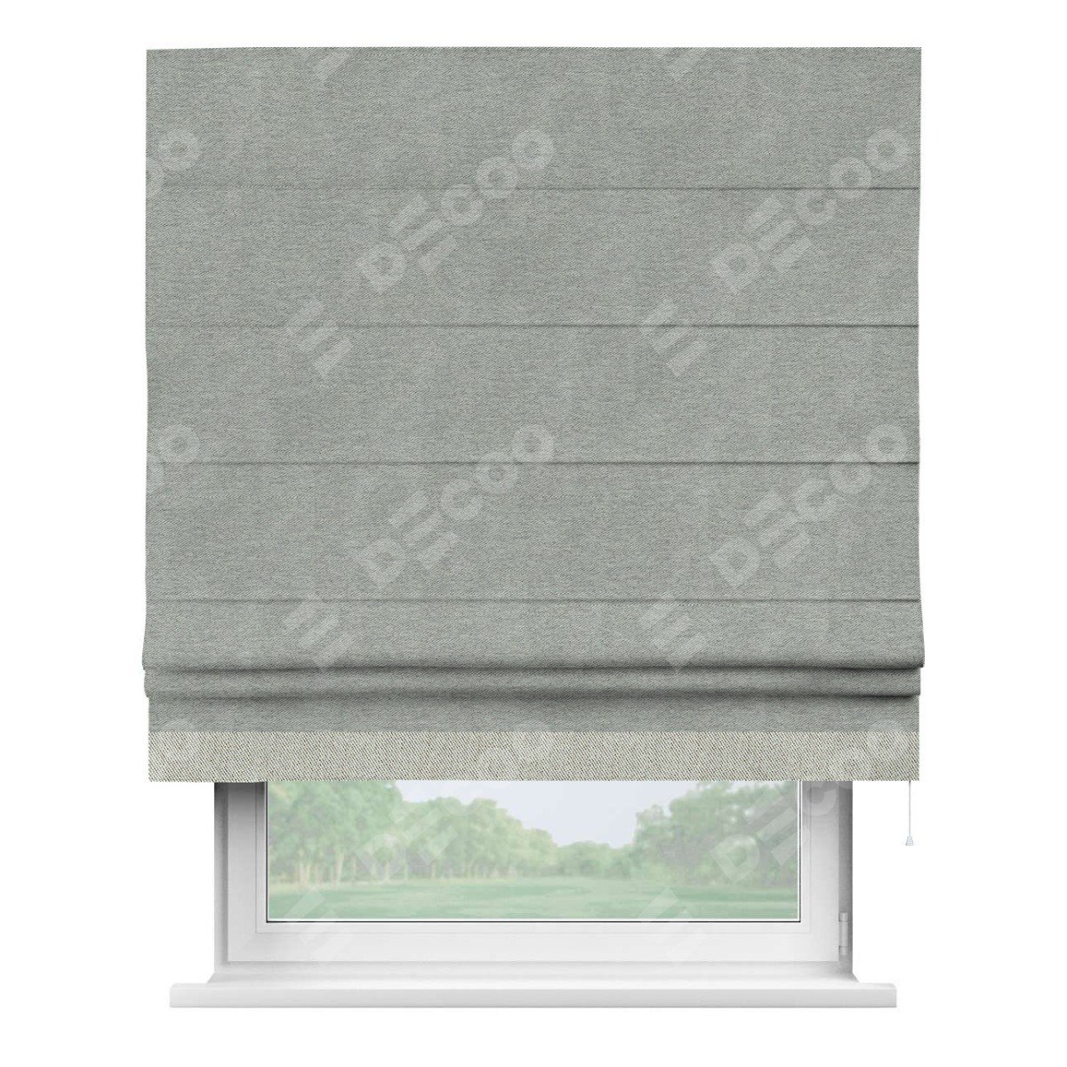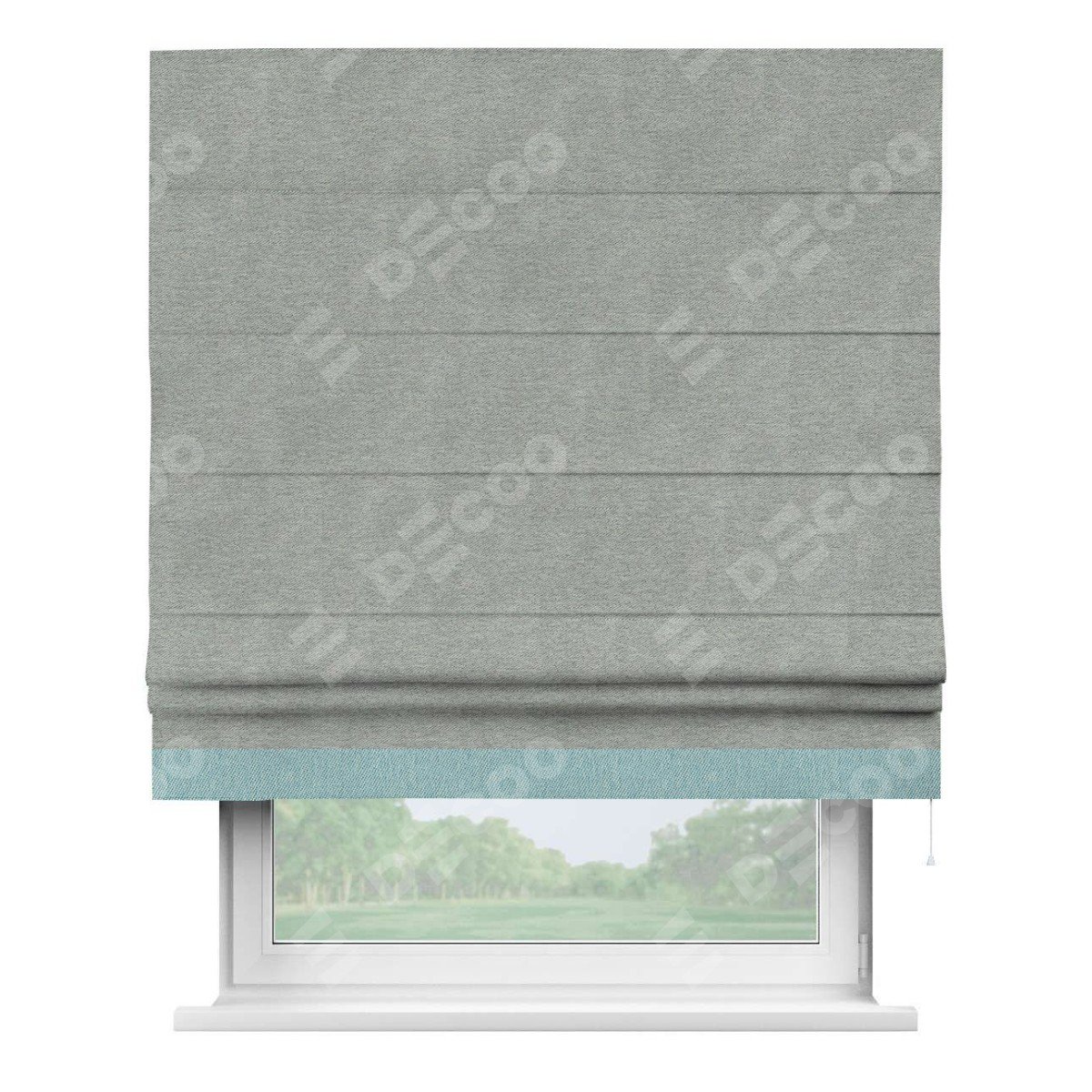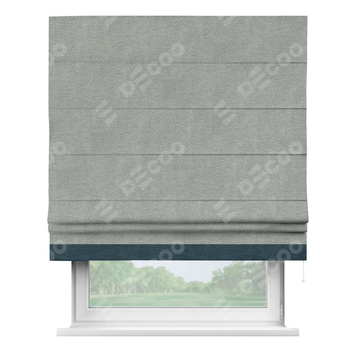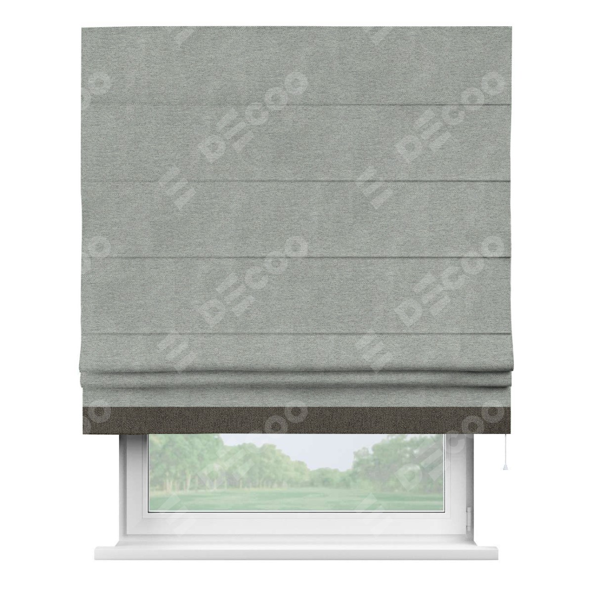 Римская штора производителя «Cortin», используется для проёма, пошита из ткани твид блэкаут светло-серый, артикул 21576. Отделка шторы кантом «Джестер», ткань для канта используется из твида разной расцветки на выбор. Имеет универсальный механизм и подходит для монтажа: на потолок, на стену и в нишу.