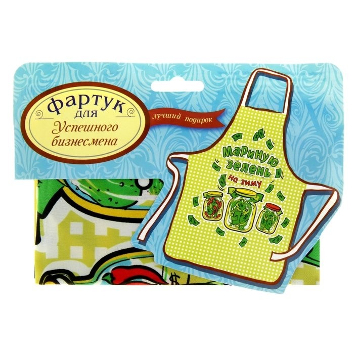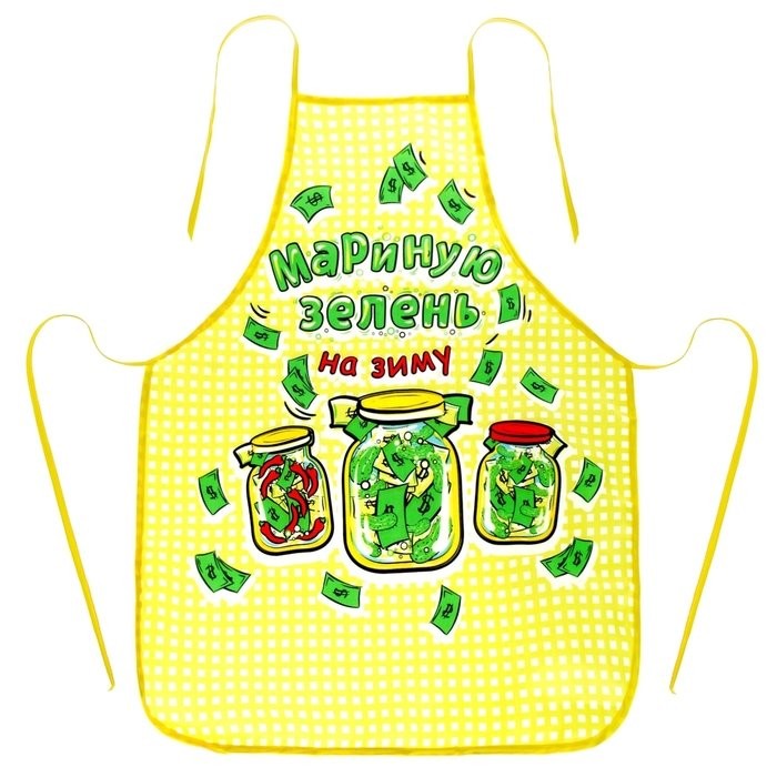 Грязная посуда, шипящее масло и кипящий бульон — наши главные враги во время готовки. Чтобы защитить одежду от пятен и грязи обязательно наденьте фартук «Мариную зелень на зиму». Это не только функциональное, но и оригинальное изделие. Его уникальный принт способен привести в восторг всех членов семьи и гостей вашего дома, а средняя длина — защитить вашу одежду от «кулинарных опасностей».
