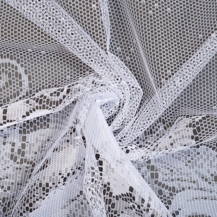 Тюль кухонная без шторной ленты, 170×145 см, цвет белый