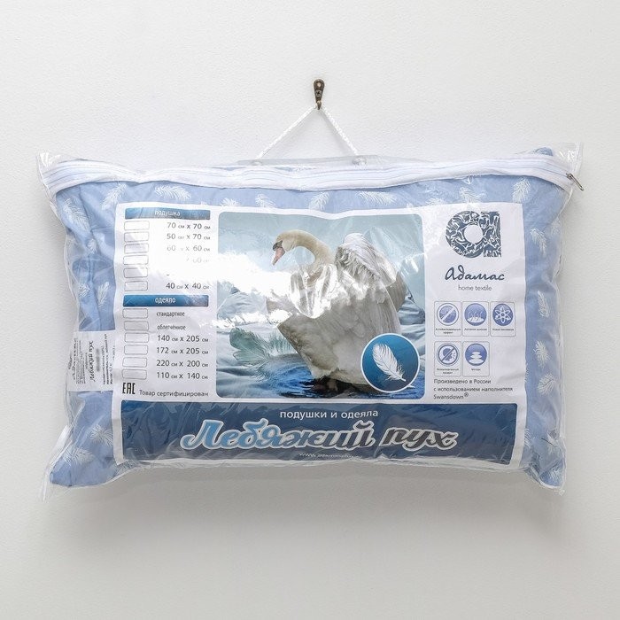 Подушка Адамас «Лебяжий пух», размер 40×60 см, чехол тик
