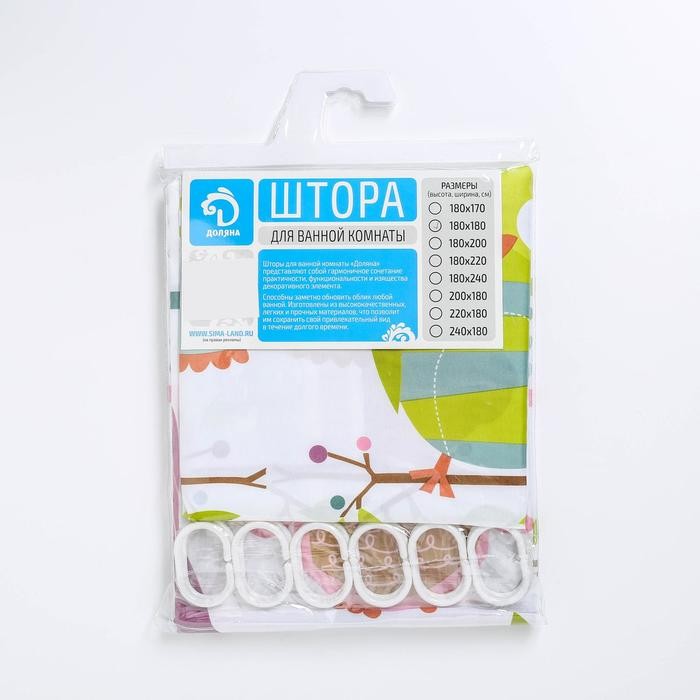 Штора для ванной комнаты Доляна «Совушки», 180×180 см, полиэстер