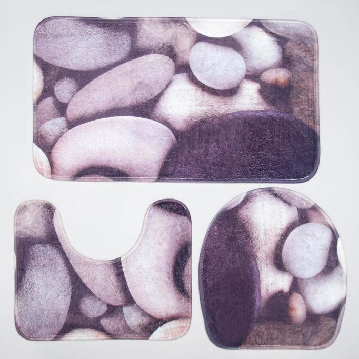Набор ковриков для ванны и туалета Доляна «Камни», 3 шт: 38×46, 40×45, 45×75 см