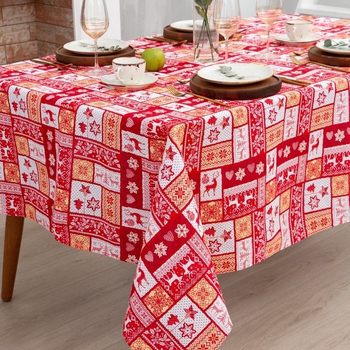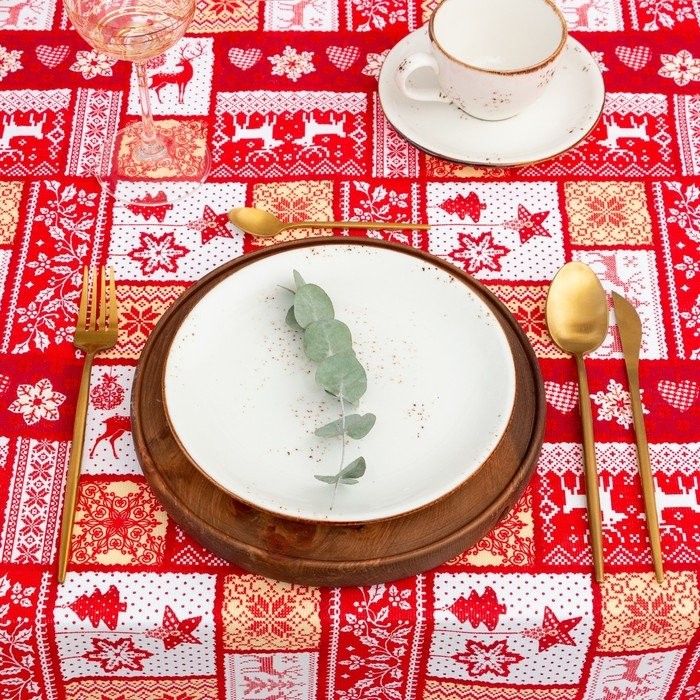 Скатерть «Доляна» Скандинавский рисунок 220*144 см, 100% хлопок, рогожка, 164 г/м2