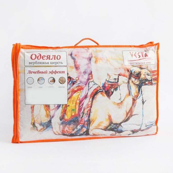 Одеяло облегченное 140×205 см, шерсть верблюда, ткань тик, п/э 100%
