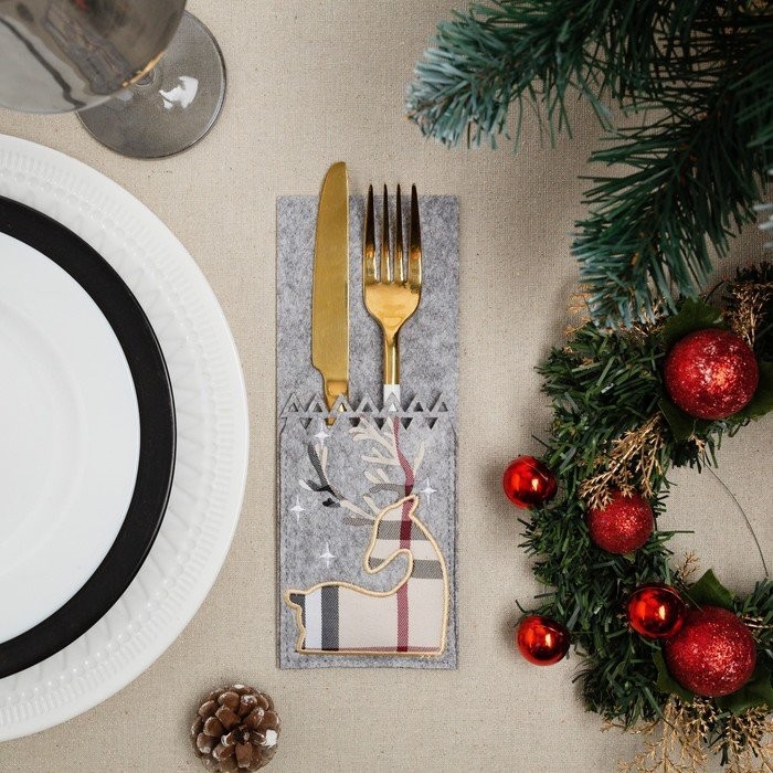 Конверт для столовых приборов «Олень» 8,5×21 см, 100% п/э, фетр