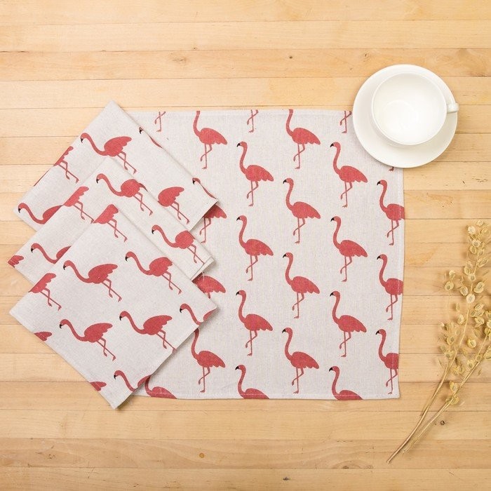 Набор салфеток Доляна 40х40см 4шт, Фламинго, 100%пэ, рогожка 200 гр/м