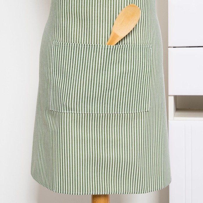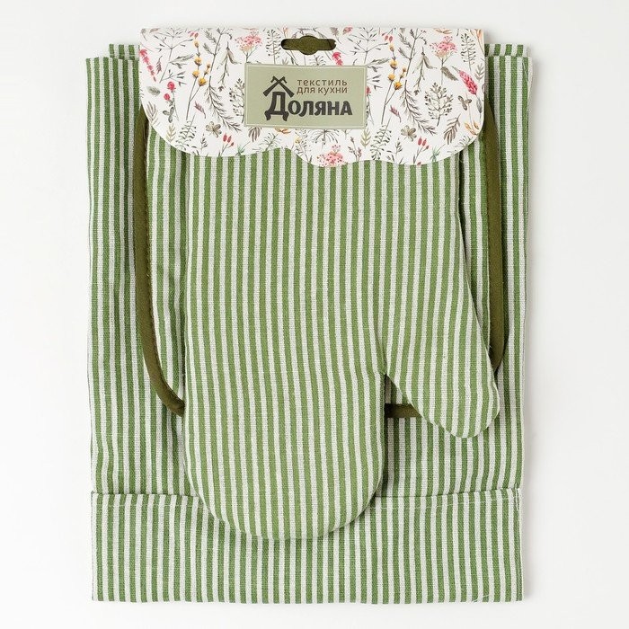 Набор Доляна фартук/прихватка/варежка, Зеленая полоска, 100%пэ, рогожка 200 гр/м