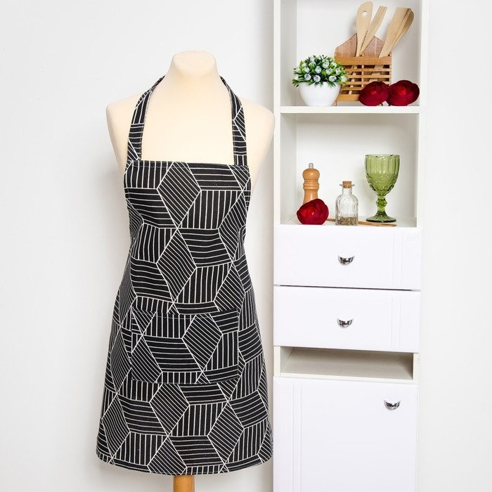 Фартук Доляна 60х70см, Тренд черн, 100%пэ, рогожка 200 гр/м