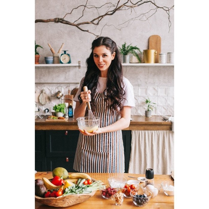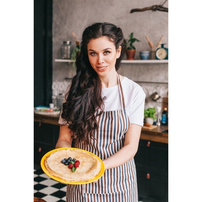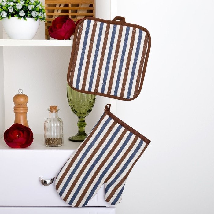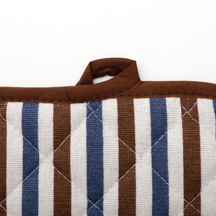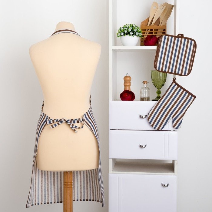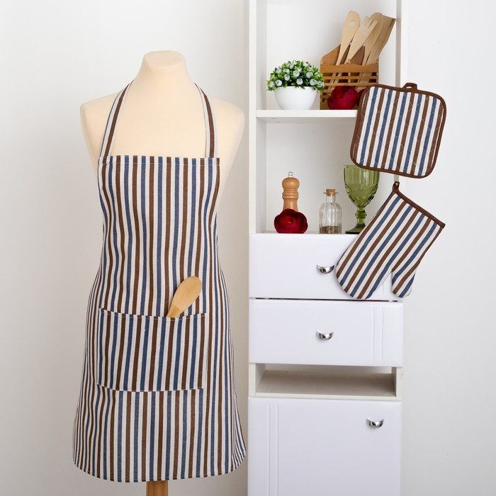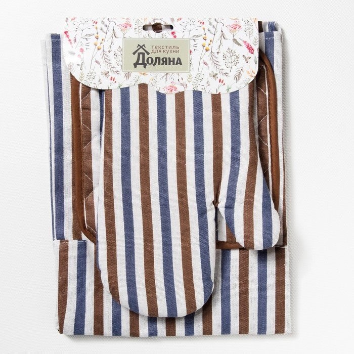 Набор Доляна фартук/прихватка/варежка, Полоска син-корич,100%пэ, рогожка 200 гр/м
