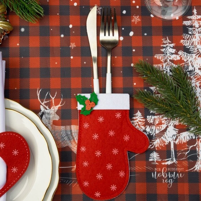 Конверт для столовых приборов «Варежка» 10×15 см, 100% п/э, фетр