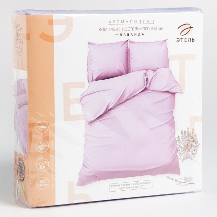 Постельное бельё «Этель» евро Арома Поплин 200×210 см, 240×220 см, 50×70 см — 2 шт., Лаванда, 125 г/м², 100% хл