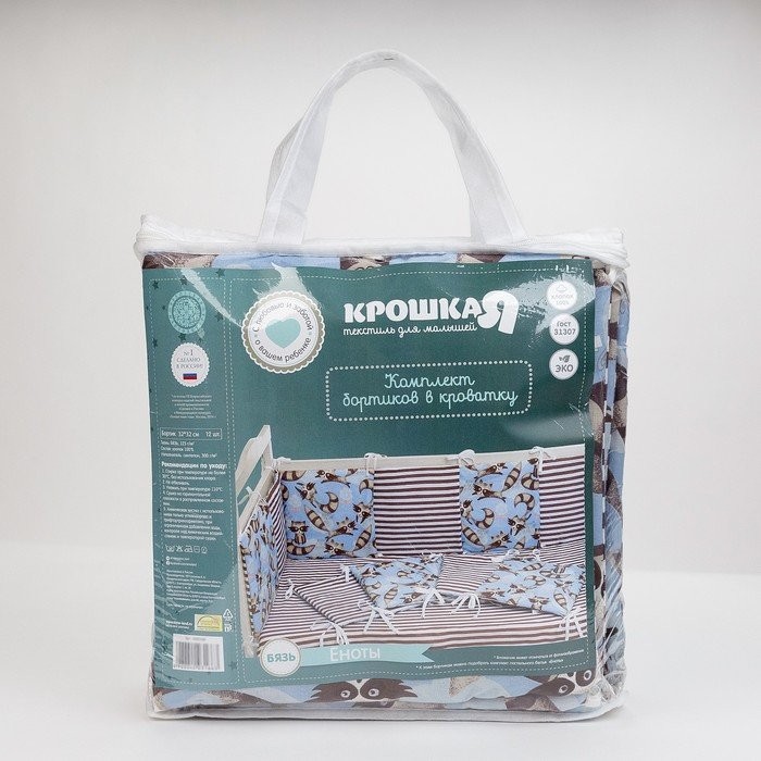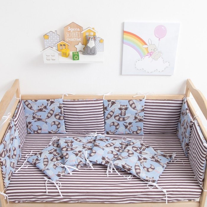 Бортики в кроватку Крошка Я «Еноты», (32 × 32 см, 12 шт.), бязь/синтепон