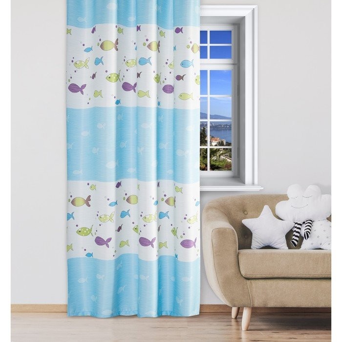 Портьера Крошка Я «Океан» без держателя цвет голубой, 110×260 см, блэкаут, 100% п/э