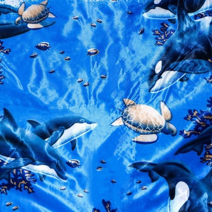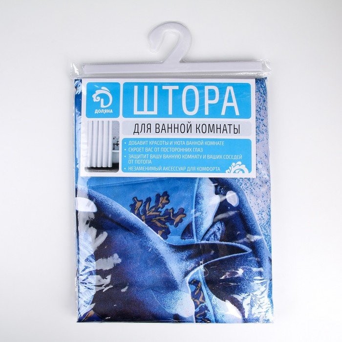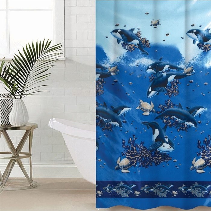Штора для ванной комнаты Доляна «Киты и черепахи», 180×160 см, полиэстер